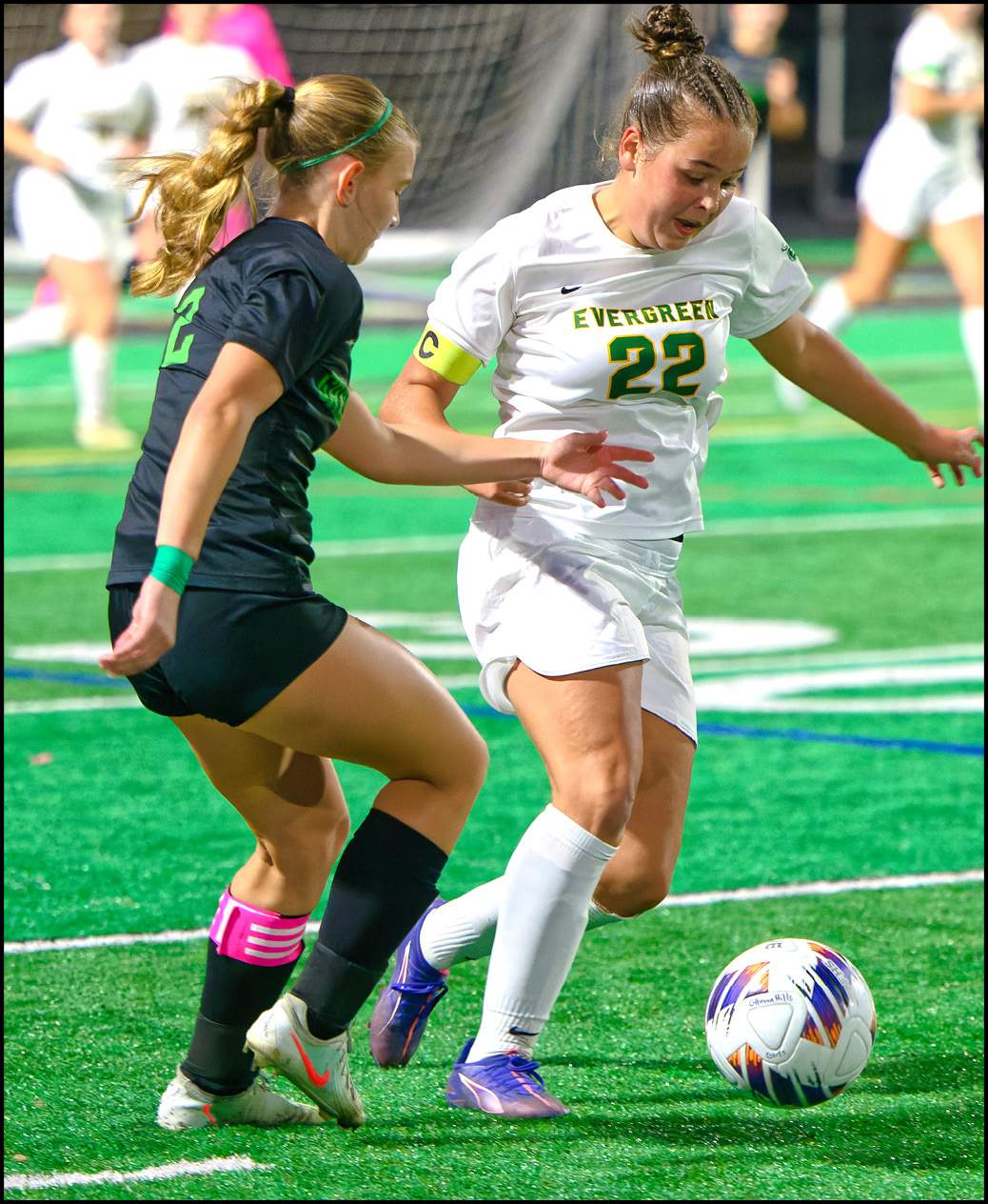 Evergreen jumped out to a fast 1-0 lead just eight minutes into the game when Emma Hein put the ball in the back of the net after Gleckler battled the ball away from a Bear defender.