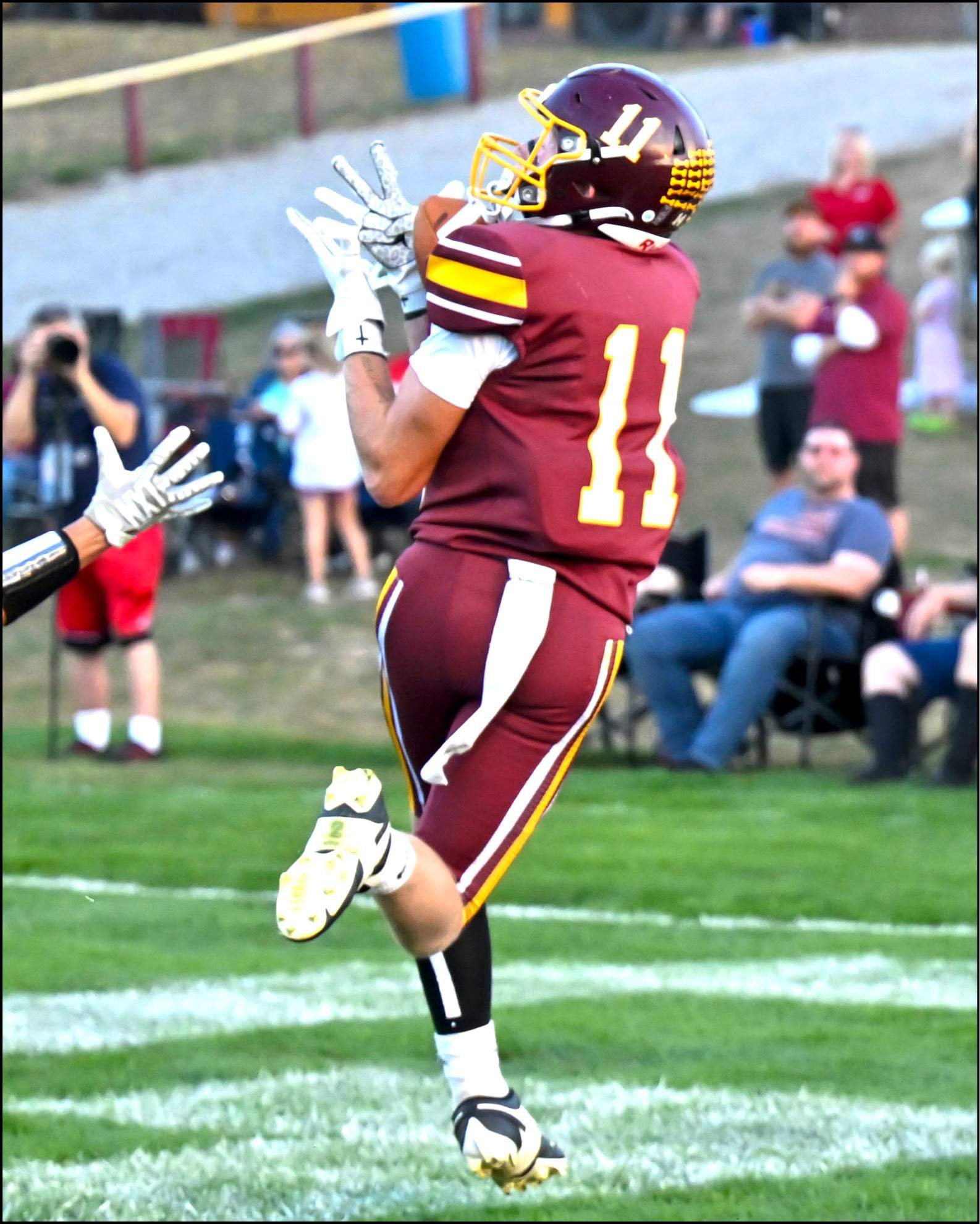 FIRST QUARTER SCORE … Karter Gibson catches a 28-yard touchdown pass to give Edgerton an early lead.