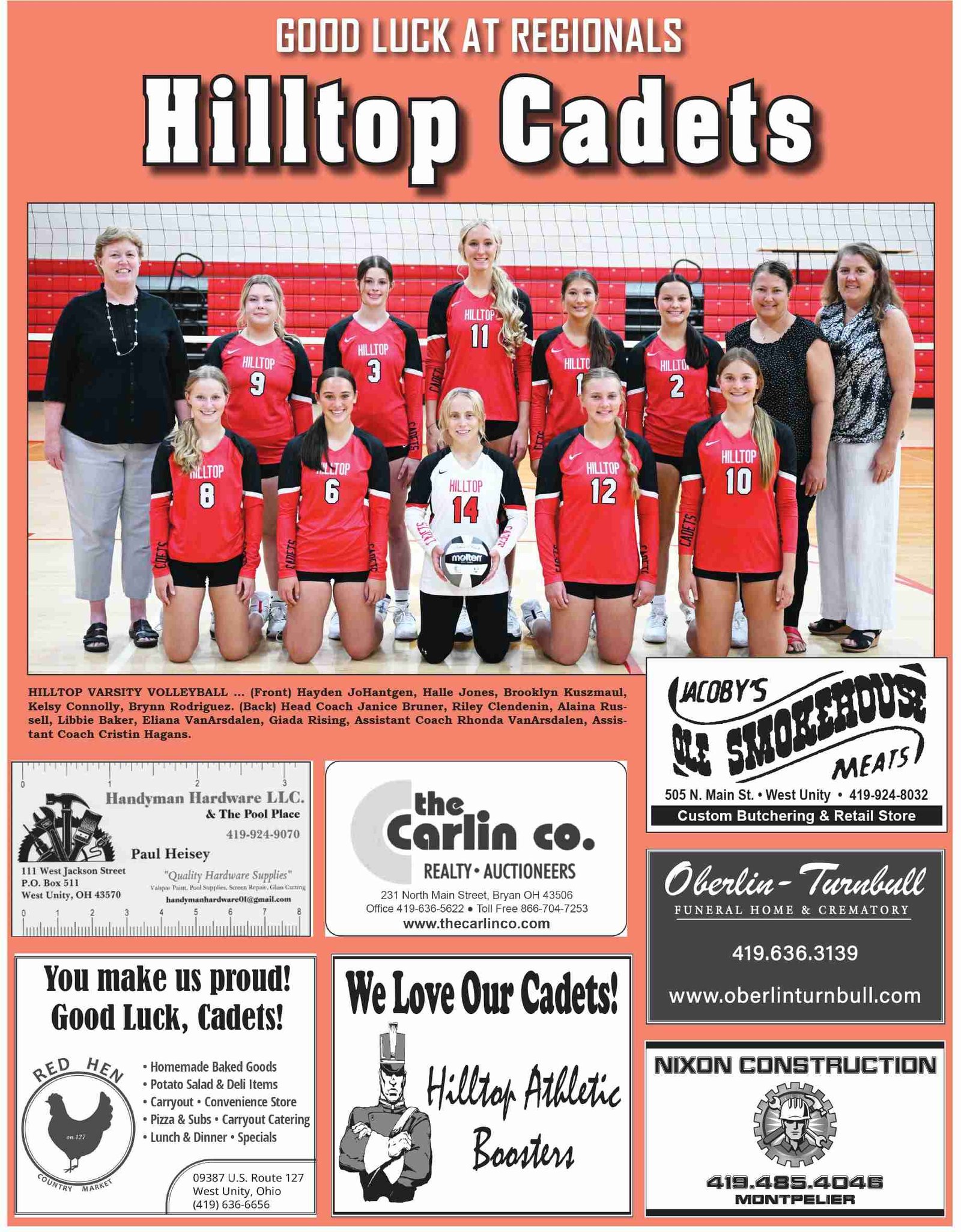 Good luck to the Hilltop Cadet athletes as you battle in tournament play! From your friends at The Village Reporter and local community sponsors.