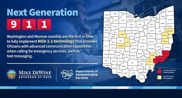 PRESS RELEASE – Ohio Governor Mike DeWine has announced that Washington and Monroe counties are the first in the state to fully implement Next Generation 9-1-1 (NG9-1-1). Governor DeWine made the adoption of NG9-1-1 across Ohio a priority of his 2024-2025 Executive Budget to improve emergency response times and ultimately save lives.