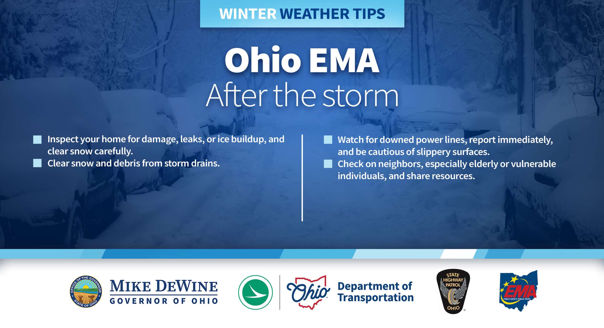The proclamation documents Governor DeWine’s directive on Friday that state agencies, including the Ohio Emergency Management Agency, Ohio State Highway Patrol, and Ohio Department of Transportation, provide additional resources and support to local communities as needed.