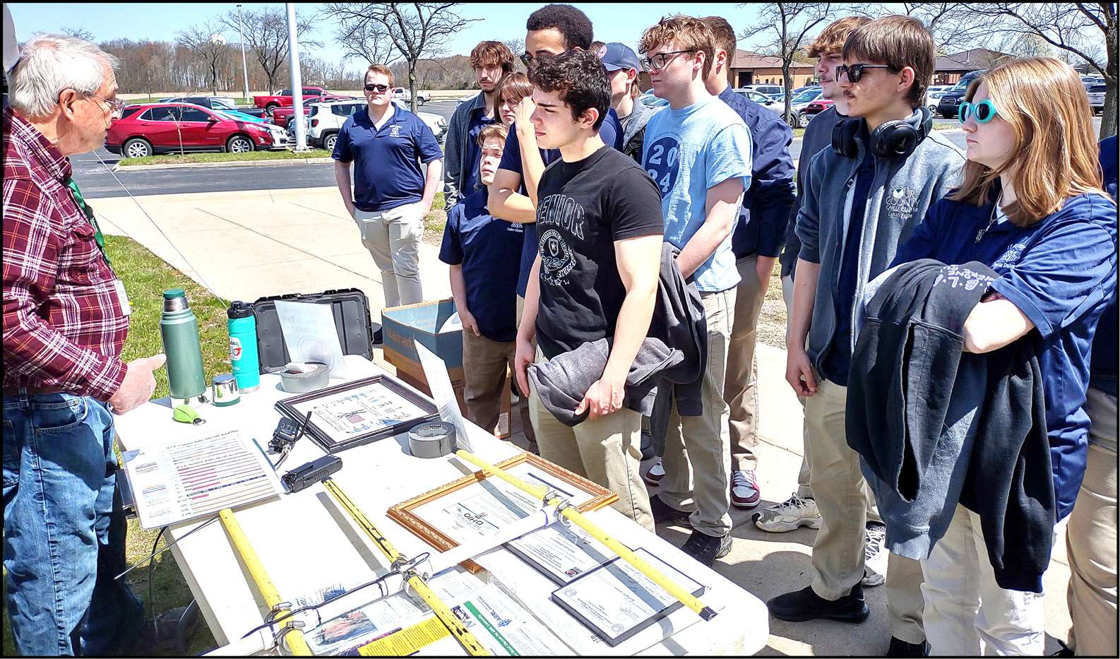 Standing by a tent erected on the college lawn, Stan DeGroff, W8SRD, enthusiastically addressed a group of students saying, “Amateur radio is full of career choices! It can lead you in so many directions.”