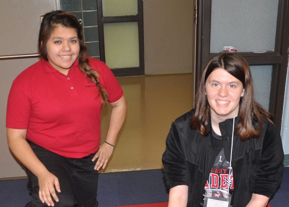 Hilltop Middle School 8th graders participated in “Exploring Careers Hands On for 8th Graders” (ECHO for 8th Graders) held at Four County Career Center. Career Explorers from the Career Center guided the students through several careers that were of interest to the 8th graders as they are looking forward to planning for their future. Shown above in the Fire and Rescue lab is (LEFT TO RIGHT) Career Explorer Leslie Schroeder (Hilltop), with 8th grader Americus Maddox. ECHO for 8th Graders is made available to all 8th graders in the four county area.