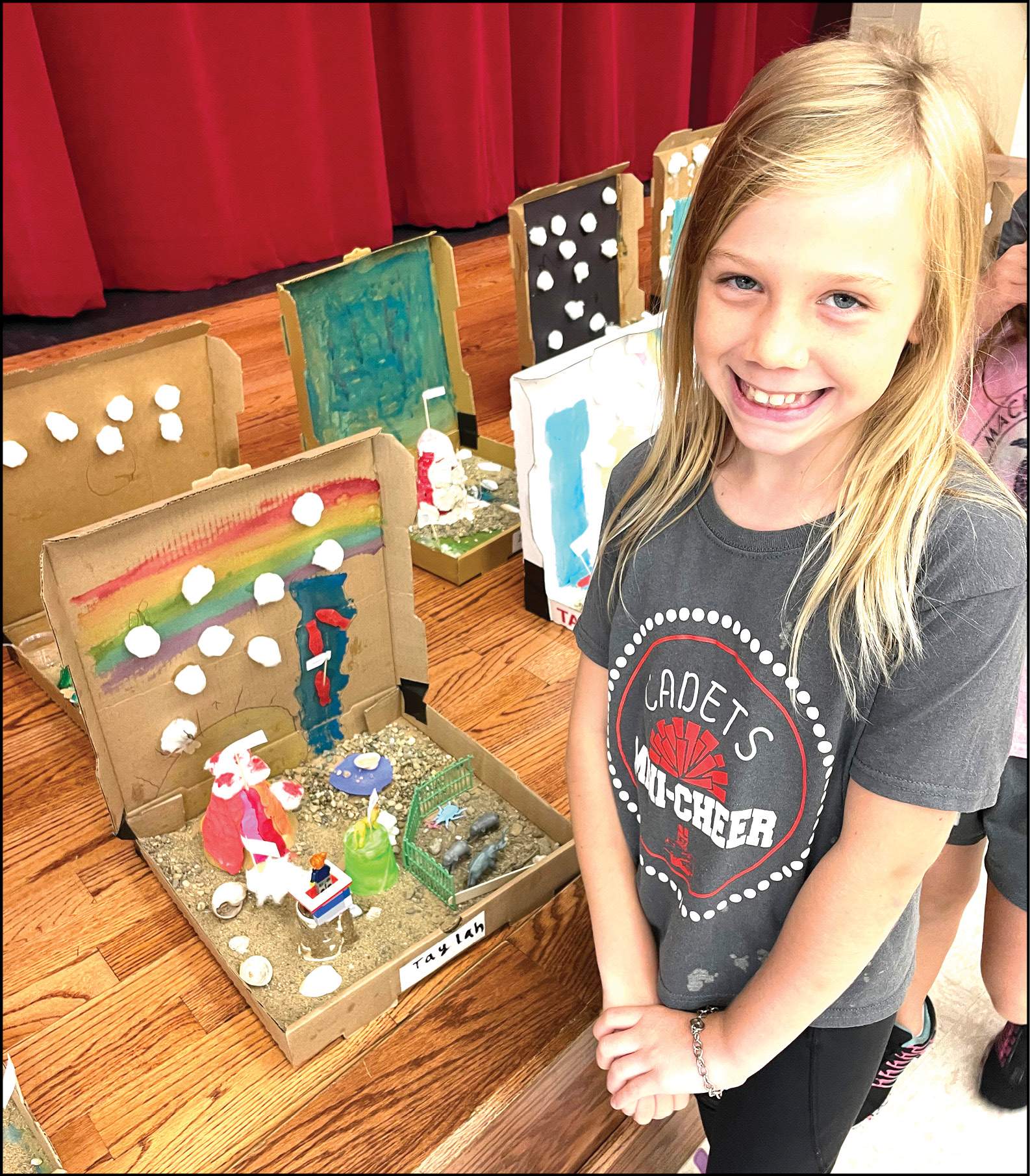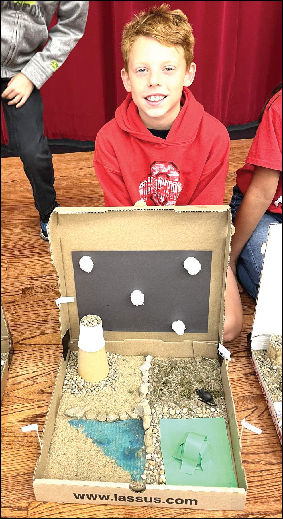 SCIENCE CLASS … Hilltop 4th graders have just finished their landform unit in science class. Pictured are landforms created by each student. Each student was to construct and label four different landforms in their pizza box.