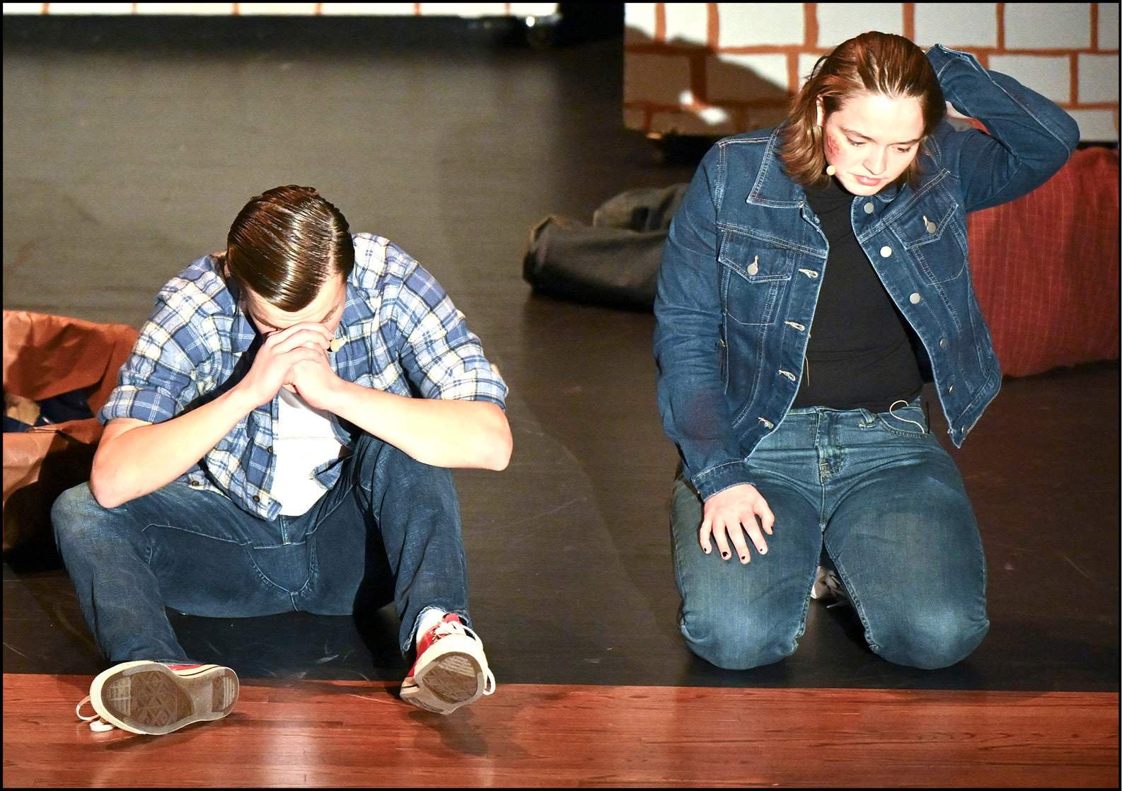 FALL PLAY … Arend Schuurman as Ponyboy and Lynley Day-Hemenway portraying Johnny reflect after an intense scene.