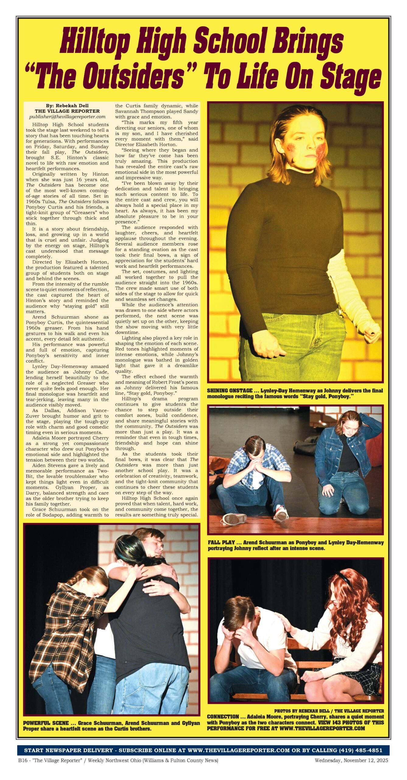 Hilltop High School students took the stage last weekend to tell a story that has been touching hearts for generations. With performances on Friday, Saturday, and Sunday their fall play, The Outsiders, brought S.E. Hinton’s classic novel to life with raw emotion and heartfelt performances.