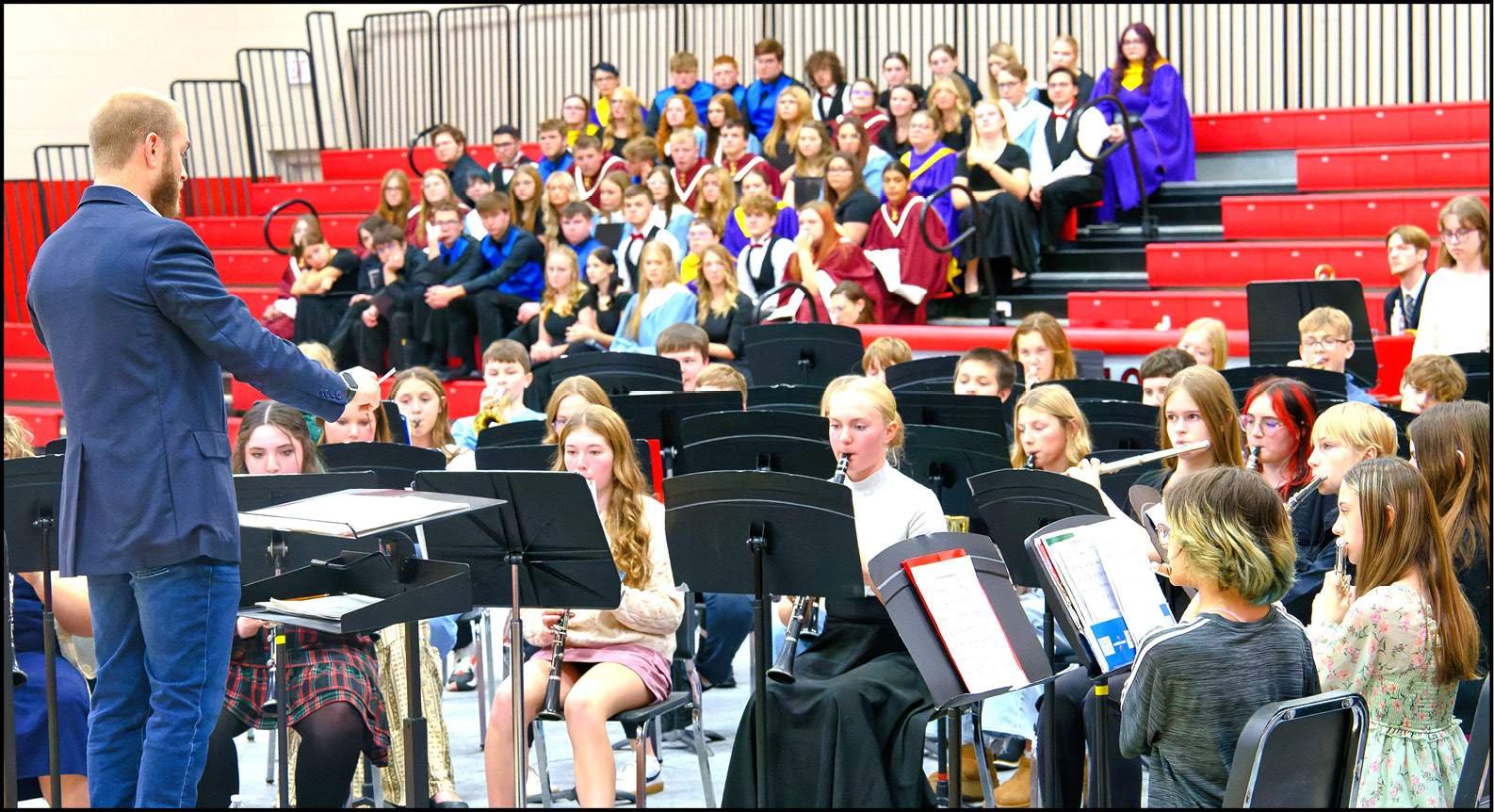 The Junior High Honors Band began the afternoon with a four-piece program under the direction of Samuel Maran, Director of Bands at Lake Local Schools. Their selections included March Bravissimo, A Song for Peace, Distant Horizons, and Crusade.