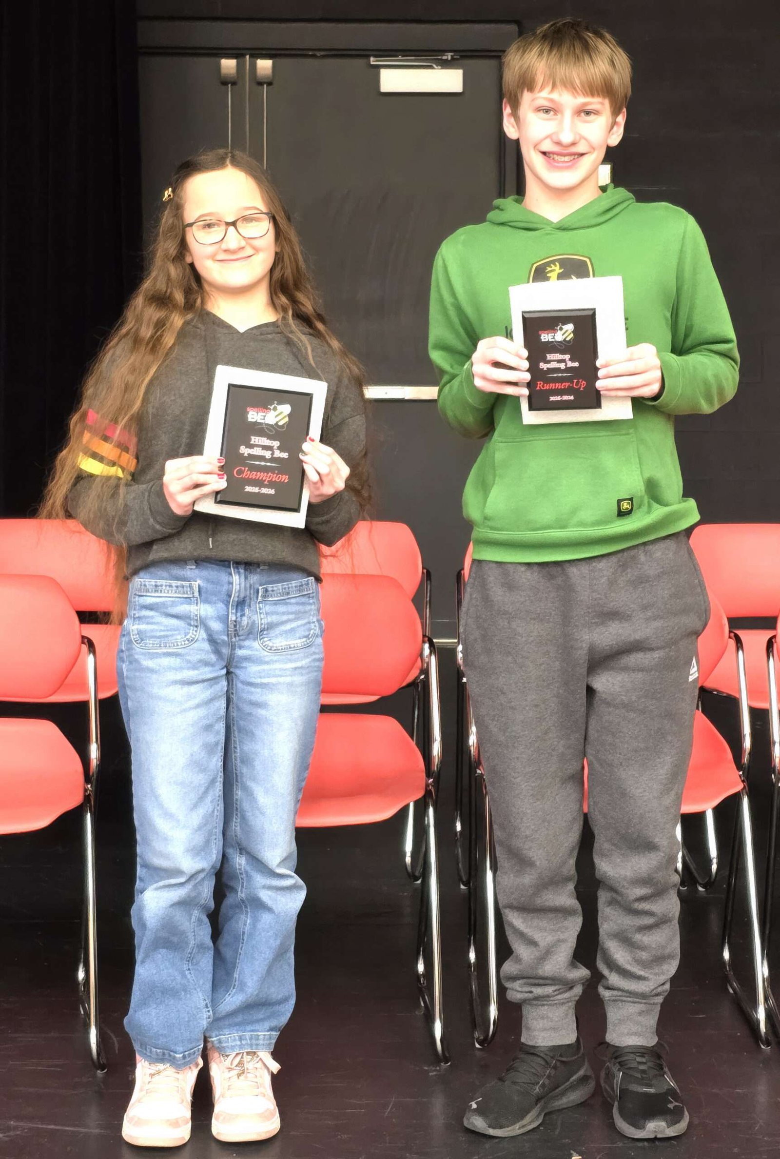SPELLING CHAMPS … The Hilltop Spelling Bee for middle school was held on December 11th. The winner was Brett Neely (pictured left) and the runner-up was Ethan Altman (pictured right).