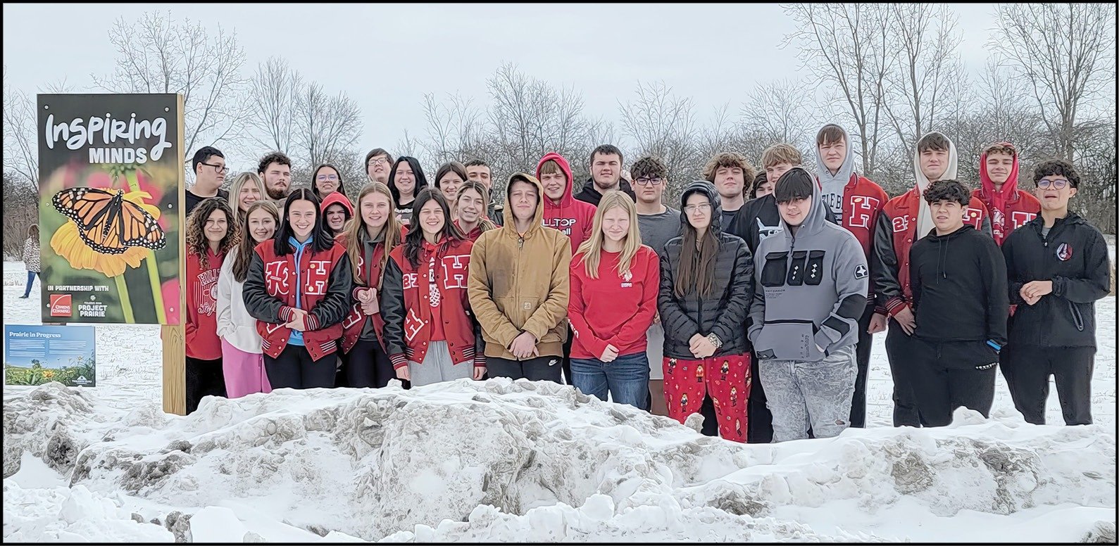 PRESS RELEASE – On Wed., Feb. 19, Hilltop students in Pre-K to seniors participated in the hand-broadcast seeding of the native prairie that will be located to the west of the junior high gymnasium.