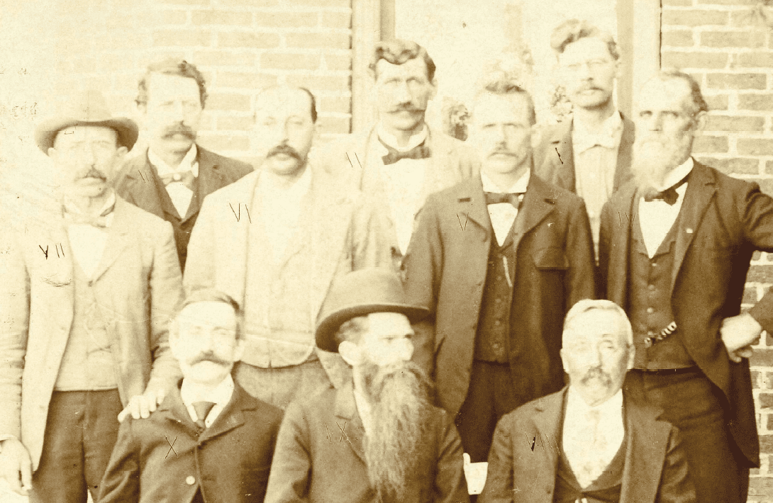Henry D. Alvord, founder of the village of Alvordton and its first postmaster, was born. Henry D. Alvord was born in Allegany County, N.Y. on July 31, 1838. The Alvord family settled for a short time in Fulton County before locating in Section 20 of Millcreek Township in 1842. The 1882 Goodspeed history of Williams County states that Alvord “worked on the home farm till 19 years old, went to Bureau County, Ill., for a year, returned and passed the next four years in attending school and again assisting on the farm. In 1864, he began business at Primrose, carrying on a dry goods store, an ashery, and filling the position of postmaster. He served as justice of the peace from 1873 to 1879, was appointed notary public in 1879, and in 1881 was appointed postmaster at Alvordton. In the spring of 1881, with the advent of the railroad, he purchased an additional farm and laid out the town of Alvordton and procured the location of the station at the place, which is now growing rapidly.” In 1882 Alvord completed an $8,000 brick hotel on the south side of Alvordton’s Main Street, west of Michigan Avenue. The building still stands, but the brick exterior is now covered with siding. Henry Alvord died January 21, 1917, and was buried in Bryan’s Fountain Grove Cemetery. Henry Alvord is shown on the right in the middle row of this vintage image of early Alvordton businessmen from the Kevin Maynard collection.