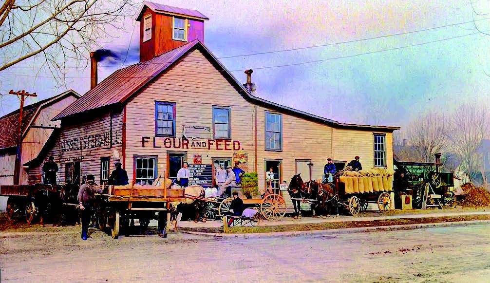 This colorized vintage image of Russell’s Mill on East Wilson Street is from the Williams County Public Library Huffman Photographic Archives.