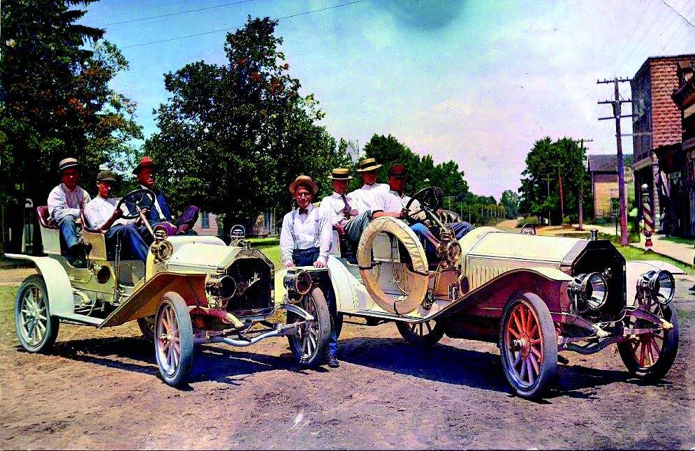 The automobile forever changed the way Williams County residents lived, worked, and played. This colorized circa 1910 photograph, printed from a glass plate negative, shows a group of automobile enthusiasts with a Model 10 Buick on Edgerton’s North Michigan Avenue. This vintage image is from the Williams County Public Library Huffman Photographic Archives.