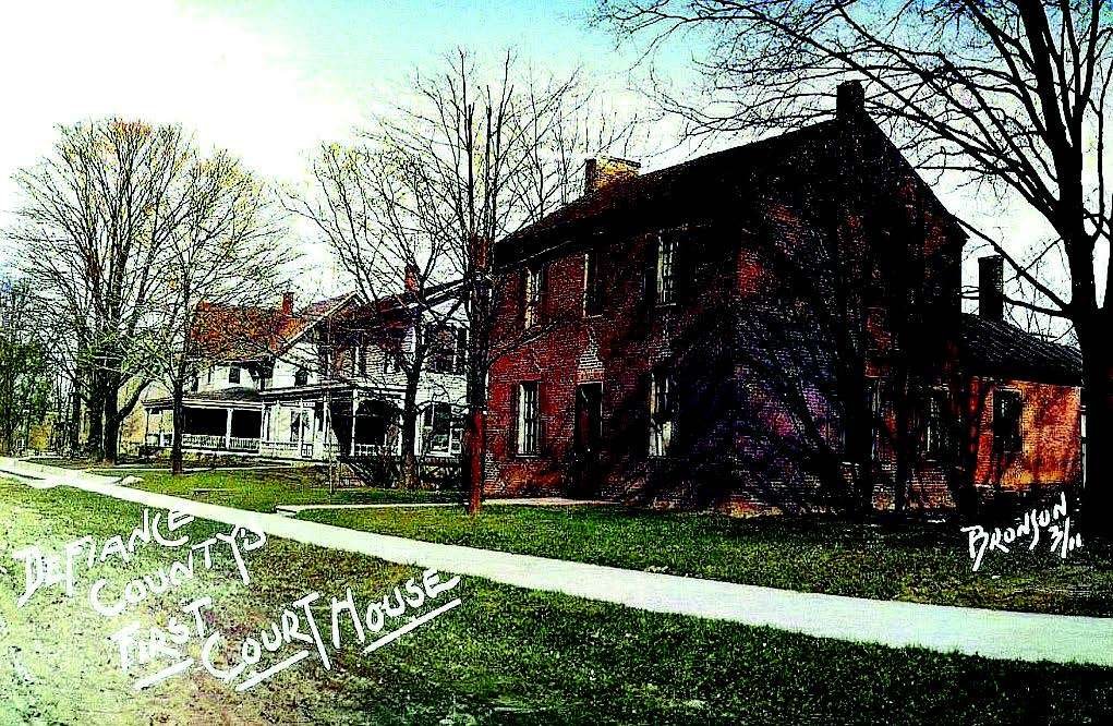 This colorized circa 1911 vintage image of the first Williams County courthouse is courtesy of the Defiance Public Library.