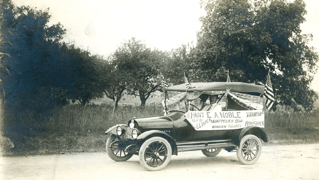 This undated picture postcard shows a decorated automobile advertising Edward A. Noble’s Montpelier paint and wallpaper store. Noble, a Morenci, Michigan native, was also a painting, wallpaper, and decorating contractor, and in 1921 operated the Noble Hardware at 211 West Main Street. This vintage image is from the Kevin Maynard collection. – Do you have a historic Williams County photo you would like to share? Email: publisher@thevillagereporter.com.