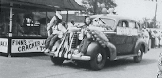 The above photo was taken at the Metamora Fun Day parade, and shows a decorated car, with unknown girls on the car. The car was decorated with balloons and streamers. The photo was taken on August 26th, 1938, and took place on a brick street. Photo provided by the Fulton County Historical Society.