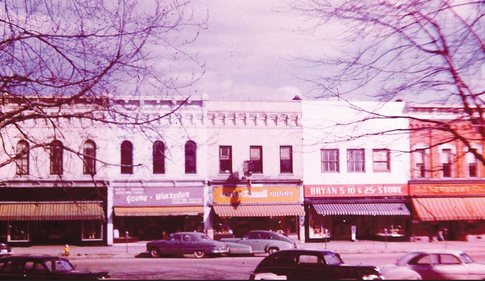 Ringer’s Drug Store in the 100 block of South Main Street, Bryan, closed when owner Mic Ringer retired after nearly 40 years in the business. The drugstore was purchased by Mic’s parents, Ralph and Neva Ringer, from Dan Matthews in 1946. In 1971, the Bryan Times newspaper reported, “A new, larger and more convenient prescription counter was added in 1959, as well as a larger [soda] fountain service seating 18 people, to serve quick meals. The photo department and cosmetic department were enlarged and are comparable to city service stores. Ringers were the first in the area to offer a 10 percent discount on prescriptions to people over 65 years old.” Ringer’s soda fountain was removed as part of a 1972 store remodeling. In June 1970, Ringers opened its branch Bryan Professional Pharmacy at the Bryan Medical Group (now Parkview Physicians Group) at 442 West High Street. In March 1998, Ringer’s opened a G.N.C. (General Nutrition Center) on the north side of the store. On January 4, 2011, CVS Pharmacy acquired and moved the pharmacy operations of both Ringer’s Drug Store and Ringer’s Professional Pharmacy to the CVS Pharmacy at 341 West High Street. This circa 1950 photograph taken by the late Eldon Smith of Bryan shows the 100 block of Bryan’s South Main Street, the east side of the courthouse square. Businesses identified with signs are (left to right) Gorny-Winzeler, Ringer’s drug store, the Bryan 5, 10 and 25-cent Store, and J. J. Newberry Company. Do you have a historic Williams County Historic photo you would like to share? Email: publisher@thevillagereporter.com.