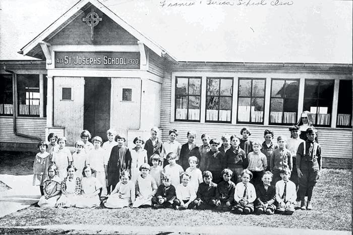 HISTORIC REFLECTION … The St. Joseph Catholic School in Blakeslee was dedicated. The first St. Joseph parish school was organized in 1874 but was discontinued circa 1884 due to lack of nuns, students and funds. On September 20, 1920, this one-story, two-room wooden frame school building was formally dedicated east of the church rectory. The first gradu-ation exercises were held in the spring of 1921, with eight students receiving diplomas. In 1960, a one-story brick school building was completed on the east side of Washington Street at a cost of approximately $170,000. The struc-ture housed four classrooms for grades 1-8, an office and hall. In the late 1960s, approximately 150 students were enrolled at St. Joseph Catholic School. Over time, enrollment declined, and 24 students were enrolled during the school’s final academic year. The last classes were held at St. Joseph Catholic School on May 31, 2007, ending 87 years of operation. The 1960 school building and church rectory were razed in September 2021. This vintage image of the 1920 St. Joseph school building is from the Williams County Public Library Huffman Photographic Archives.