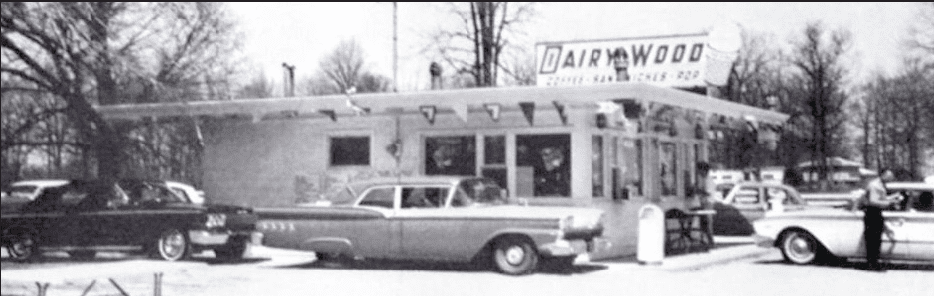 (June 22, 1957): The Dairywood Drive-In on the west side of Ohio Route 191, south of County Road C, opened for business. The Dairywood was built and operated by Lee and Vera Mae Fleagle next to their residence. Mr. and Mrs. Richard Hancock purchased the Dairywood and Fleagle residence in 1966. The Paul Rohrs family purchased the Dairywood and residence in 1975 and operated the drive-in until 1981. The former Dairywood building was razed circa 2007. This vintage image of the Dairywood Drive-In is from the 1965 Stryker High School Panthian yearbook.