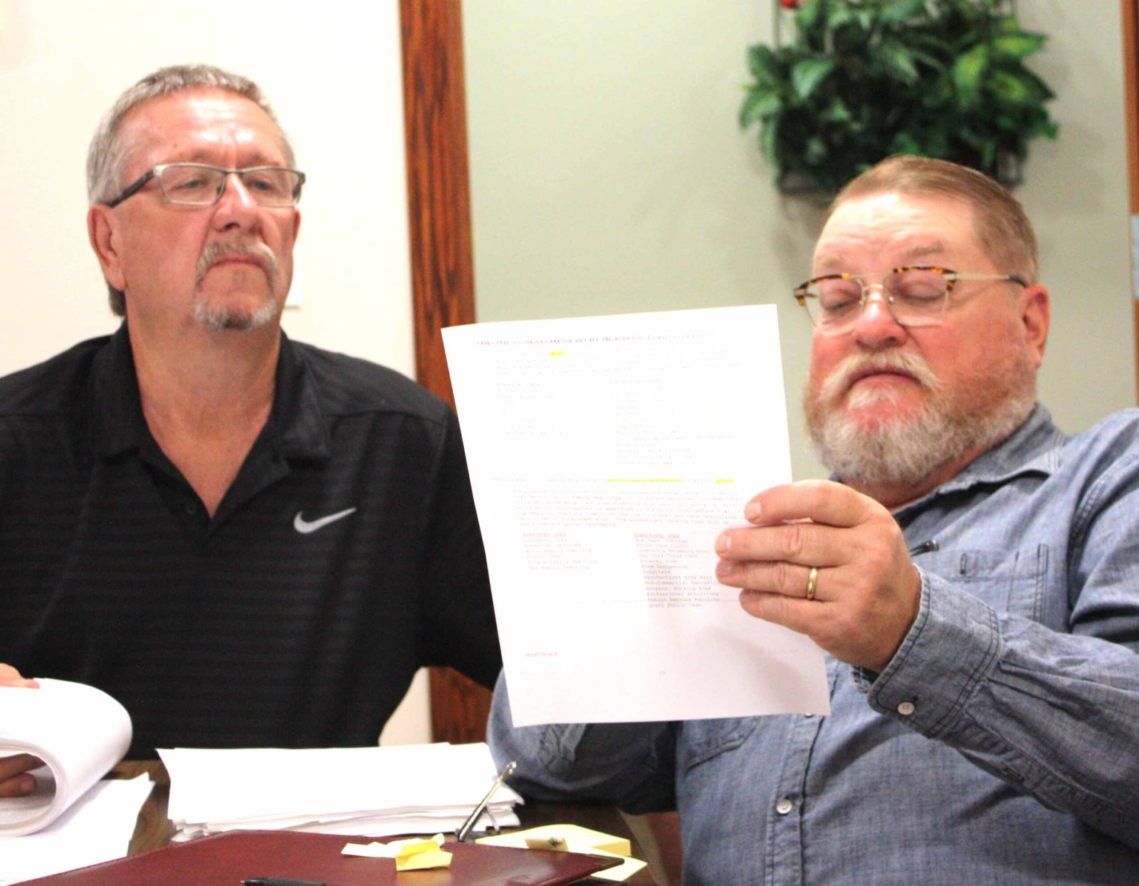 ZONING INFO REVIEW … Administrator Blair Campbell (left) and Shawn Clark (right) review information provided by the township zoning inspector.