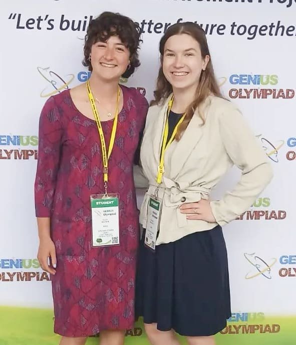 SCIENCE PROJECTS … Ingrid Hoffman (Hilltop, pictured on the right) and Ella Richer (Pettisville) attended the Genius Olympiad June 10-15 held at the Rochester Institute of Technology in Rochester New York with their science fair projects. All 50 states were represented along with 58 countries from all over the world. Approximately 821 projects were judged including over 960 students attending. To receive any award at this level is quite an honor. Ingrid and Ella both received Honorable Mention for their projects. Their names along with their country were displayed on the big screen during the awards ceremony and they were on stage to receive their award. They were selected to attend this prestigious event after judging at the Regional Science Fair held at Northwest State Community College. Congratulations to these two girls.