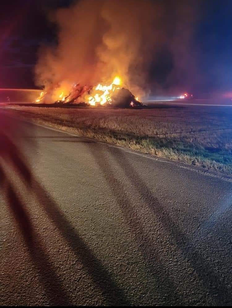 The Morenci Fire Department was called to the scene of a significant outdoor fire at 15474 Co Rd 15-1, Chesterfield Township, last night at 21:40. Upon arrival at 21:49, they found approximately 300 large square bales fully involved in flames within a wheat field, with another stack of bales also at risk in the same area.