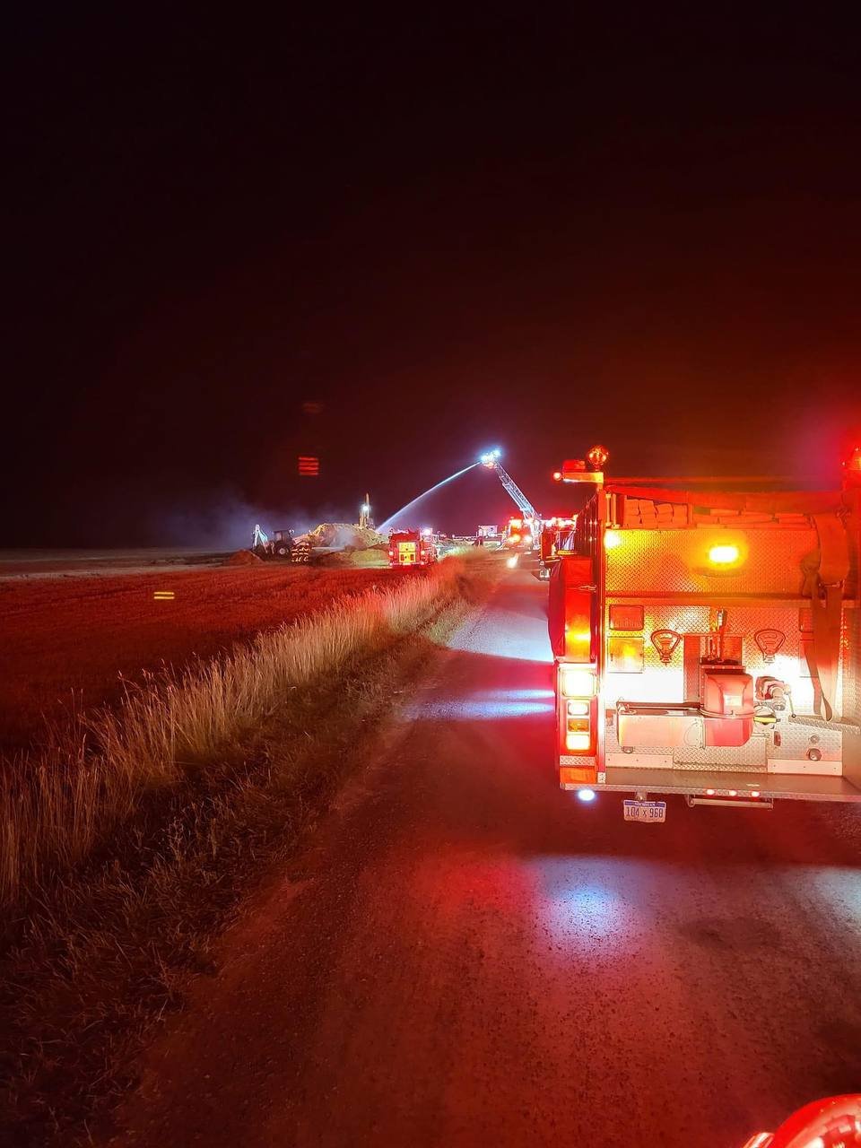 This operation also utilized 15 tankers and 154,000 gallons of water, with multiple porta tanks on the ground.
