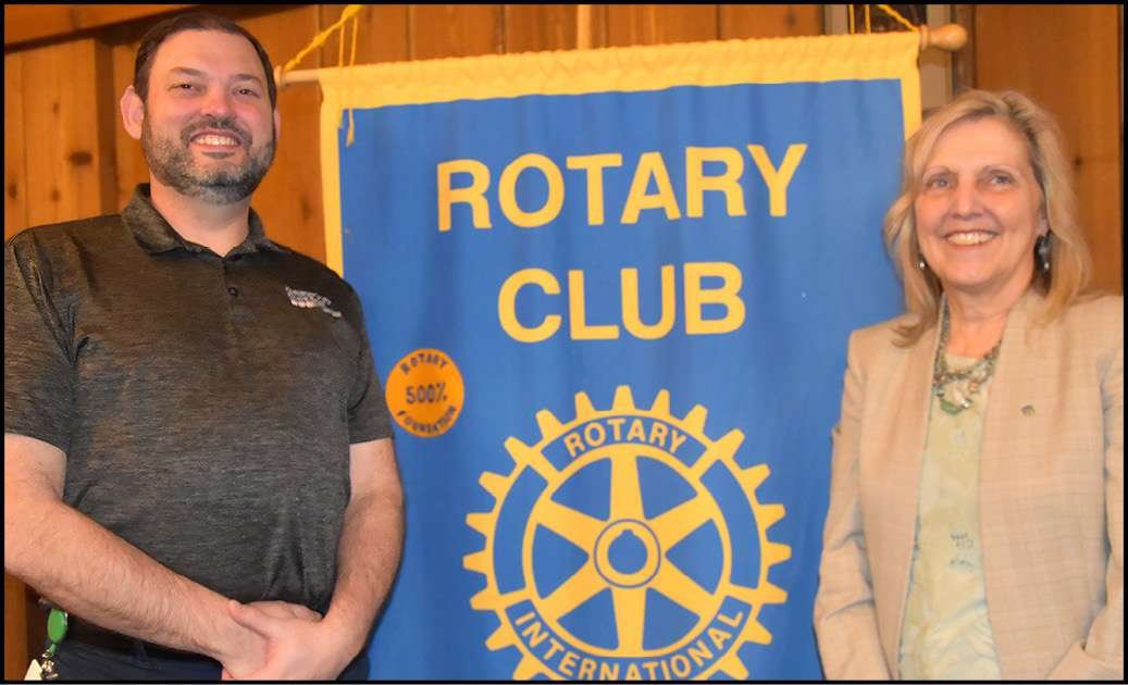 25 YEARS OF SUPPORT … Rotarian Barb Britenriker told her fellow Rotarians about the Junior Achievement program that the club has supported in the Archbold Area Schools since 2001. Currently, four Rotarians serve on the local JA board of directors — Matt Mello, Wendy Gericke, Trevor Fruth and Barb — plus more than 20 other Rotarians serve as volunteer instructors. Pictured with Barb is Archbold Rotary President Matt Mello.