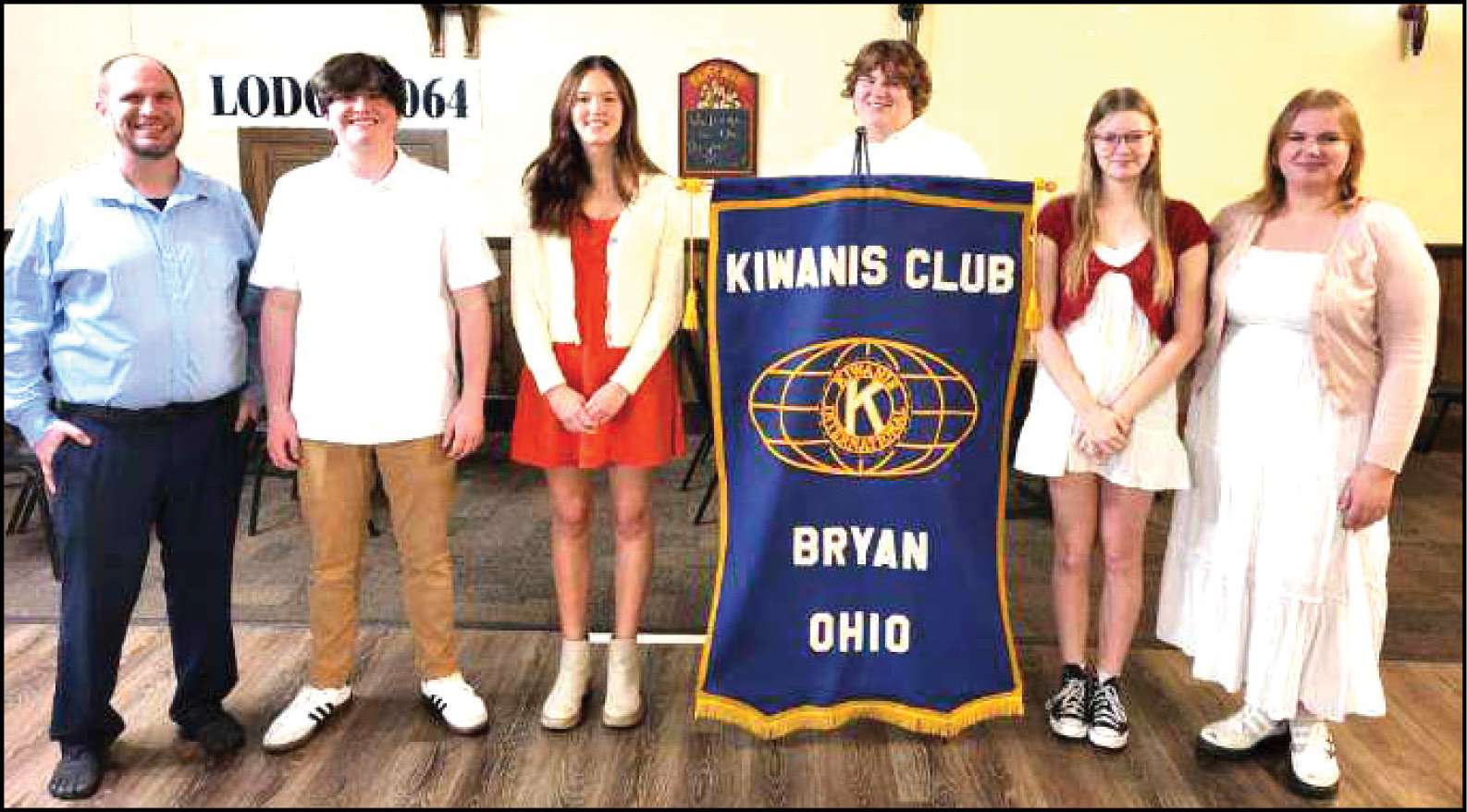 SHOW PREVIEW … Some cast members of the spring play at Bryan High School entitled “High School Musical” visited the Kiwanis Club of Bryan at their April 9, 2025 meeting. The students acted out two scenes from the musical for the club. The musical will be performed on April 11, 12 and 13th. Cast members pictured from left to right include: Mr. Ben Lupo, Director, Ben Bukowski, Emma Schlade, Owen Davis, Mya Parker and Elleah Davis.