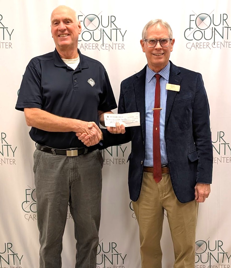 PRESS RELEASE – Dave Lamore, Grand Knight of Council 1915 (Bryan), recently presented a monetary donation to the Four County Career Center (FCCC) Endowment from the proceeds of their annual golf scramble.