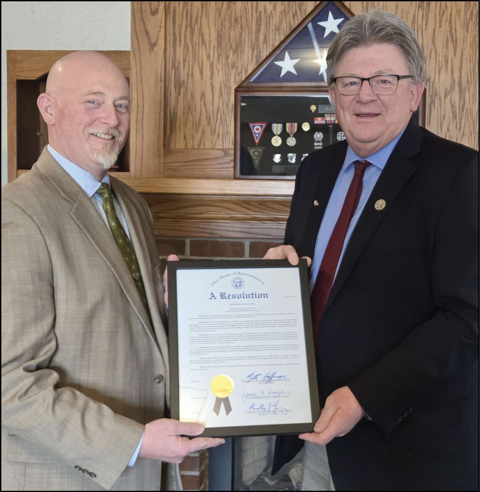 FAMILY OWNED BUSINESS … Rep. Jim Hoops stopped at Krill Funeral Service in Bryan to present owner, Gary Burr, with a Resolution form the Ohio House of Representatives honoring Krill Funeral Service on its 150th anniversary. Krill Funeral Service was founded in 1875 by Henry Krill in Edgerton. The Krill family ran the funeral home through 4 generations adding locations in Edon and Bryan. Gary & Amie Burr bought the company in 2021 and continue to serve families in Williams County and the surrounding area as a family-owned business.