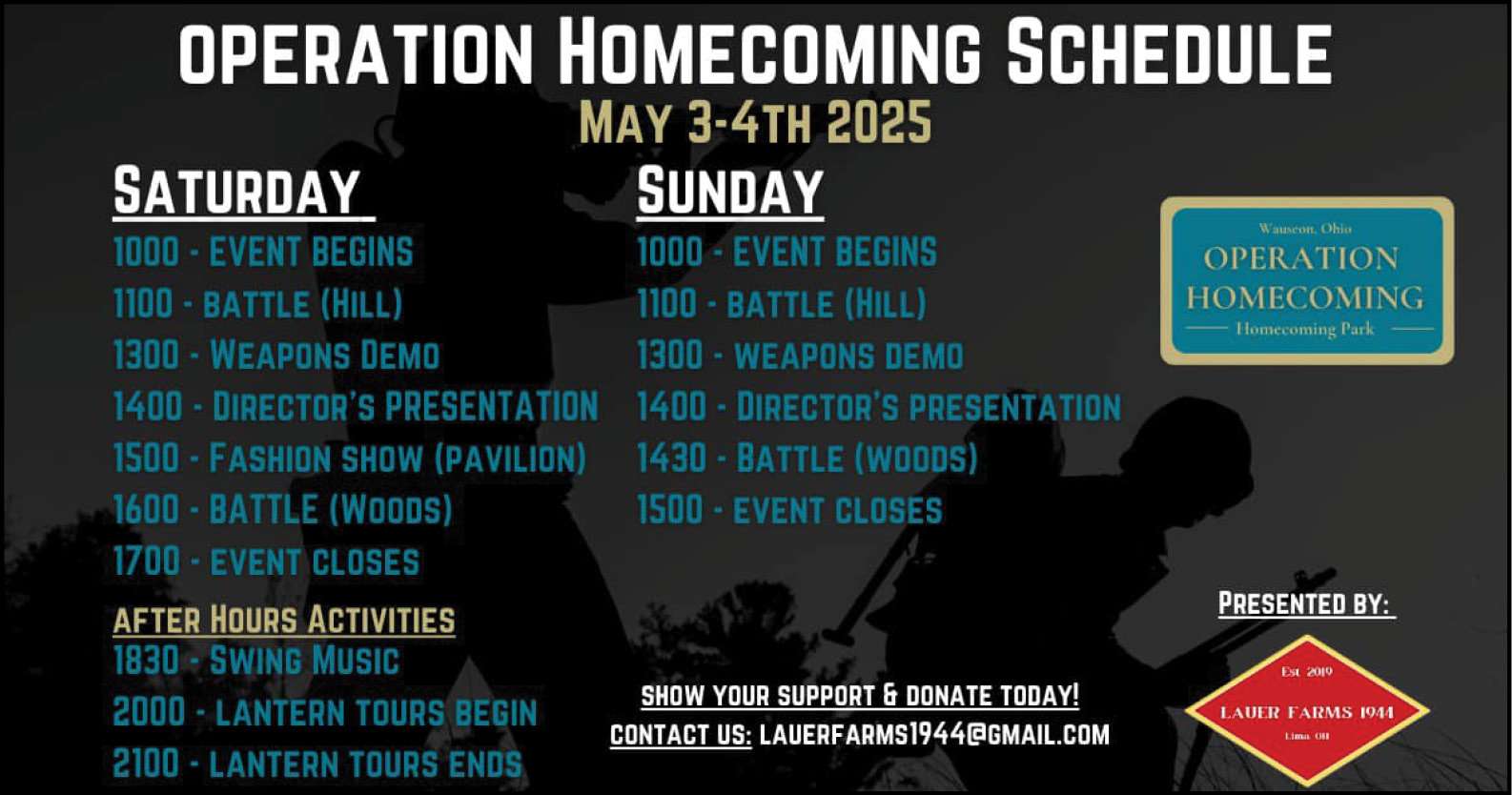 PRESS RELEASE – This May, history comes to life in Wauseon as Lauer Farms 1944, a nonprofit organization widely recognized for producing some of the most authentic and engaging World War II reenactments in the Midwest, launches a brand-new event at Homecoming Hill.