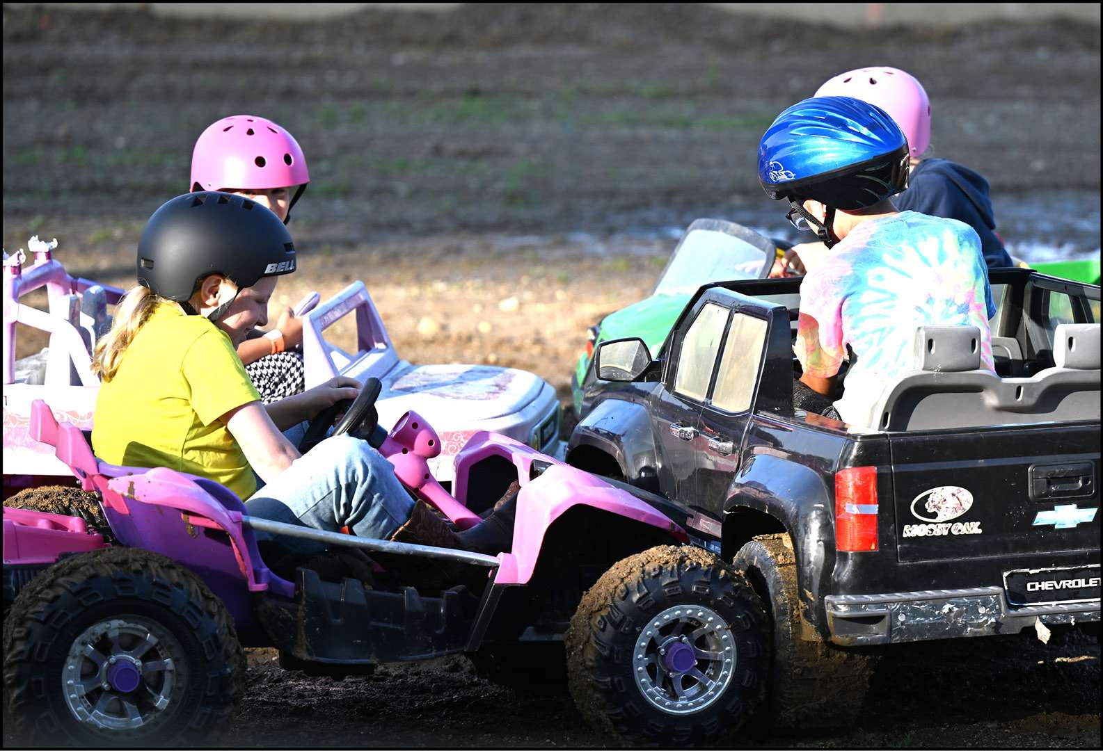 POWER WHEELS… The kids kicked off the demolition derby with a round of their own.