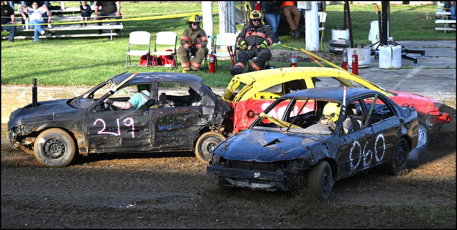 The demolition derby was soon to follow, with gates opening at 3:00 p.m. and a start time of 7:00 p.m., taking place at the grandstands. Tickets were $10 for grandstand seating or $15 for a pit pass.