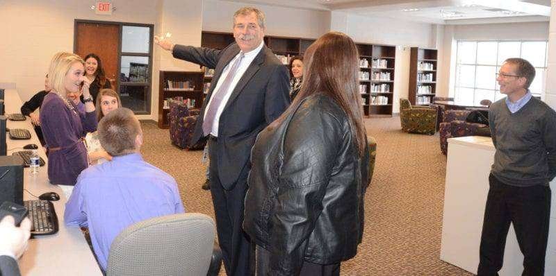 Although held in the Swanton High School Media Center, an event much bigger than the host community was on tap on this day. As the late morning minutes ticked away on December 17, representatives of a consortium of 16 Northwestern Ohio schools filtered into the Media Center, and shortly before 11:30, they were joined by the Superintendent of Public Instruction for the State of Ohio, Dr. Richard A. Ross, for an official presentation of a $3.4 million grant from the Ohio Straight-A Fund.