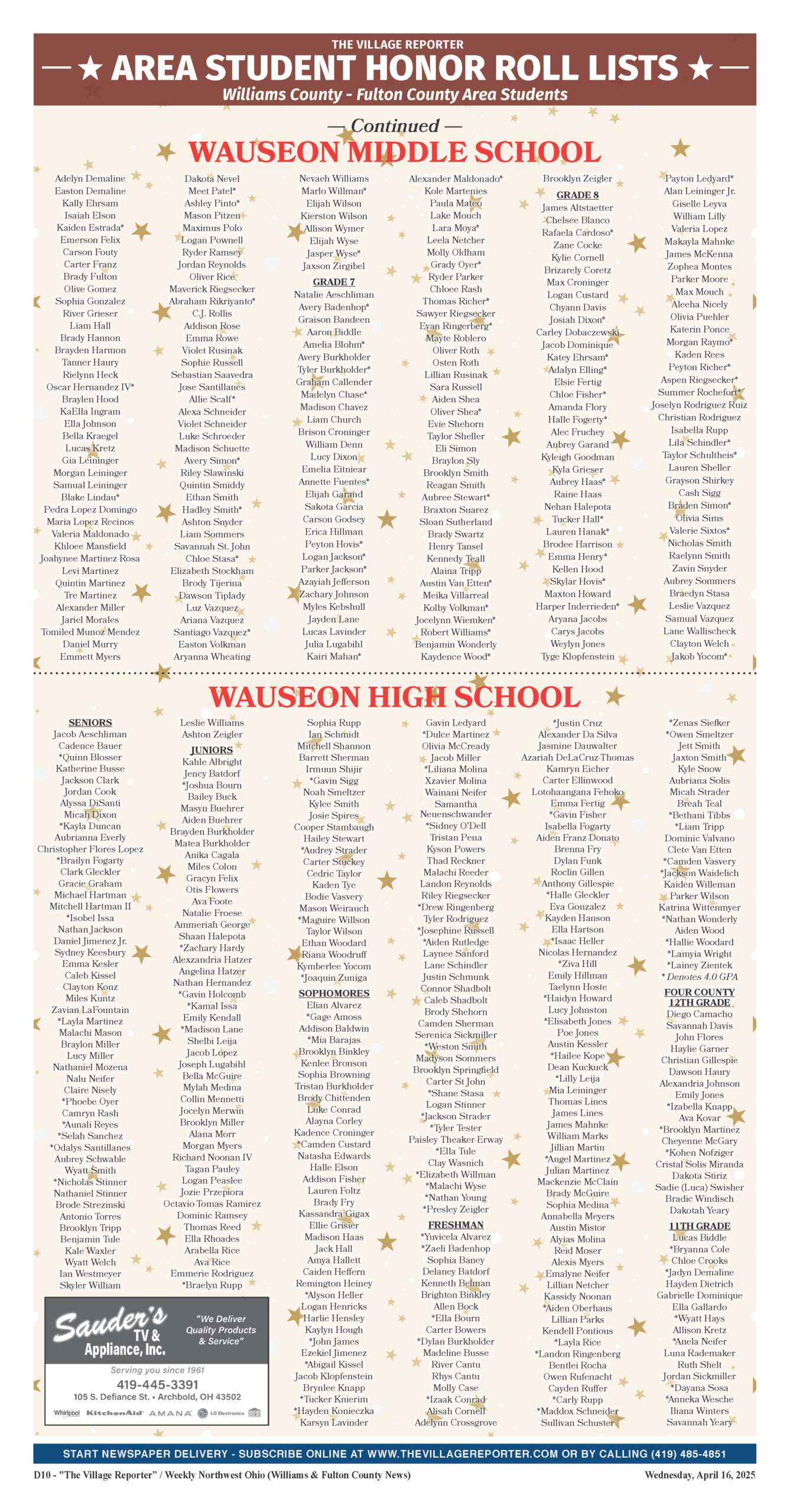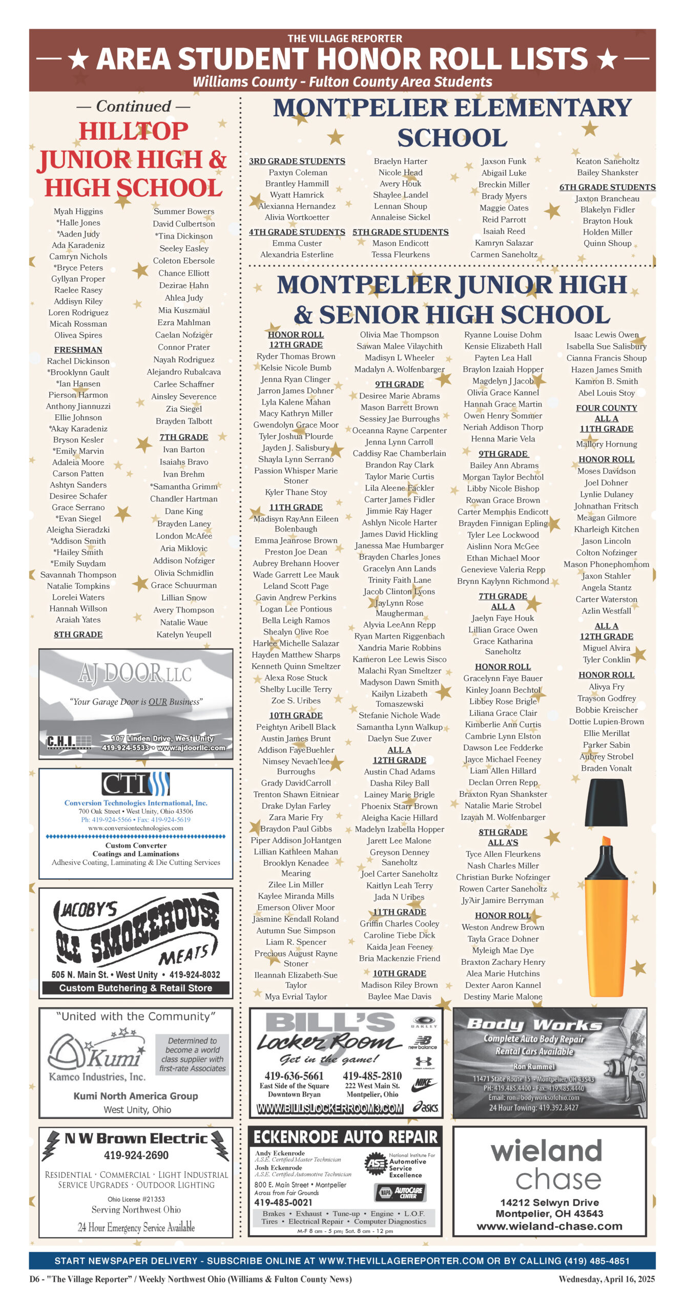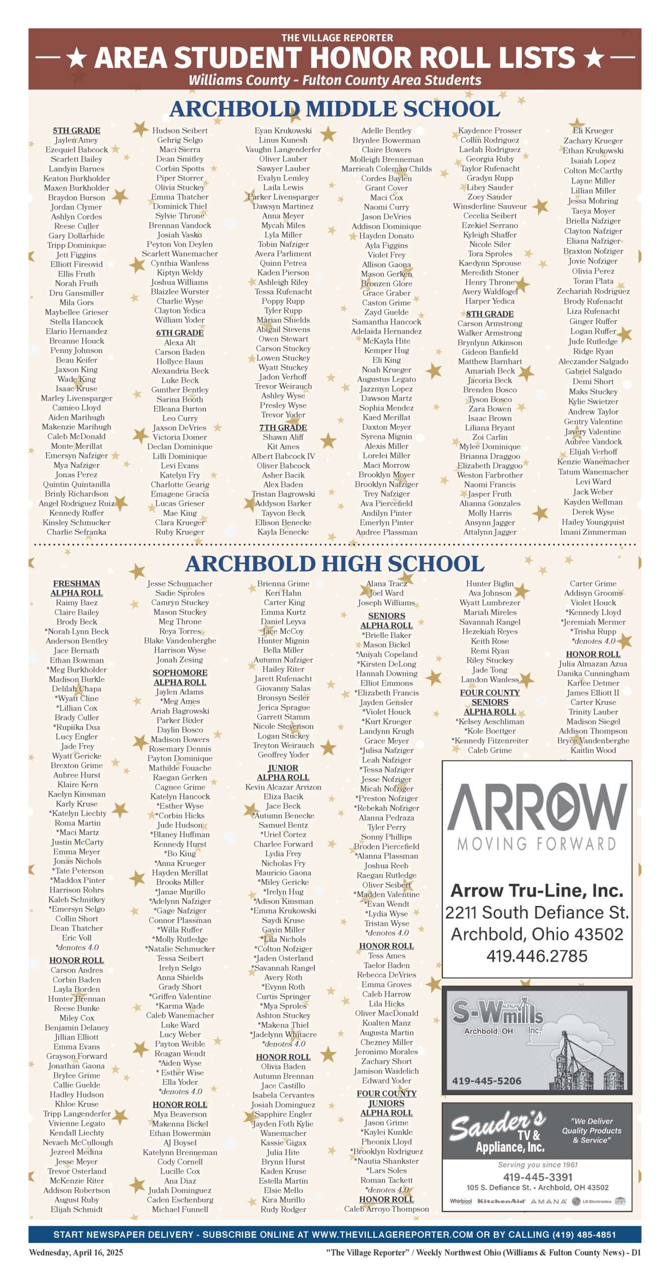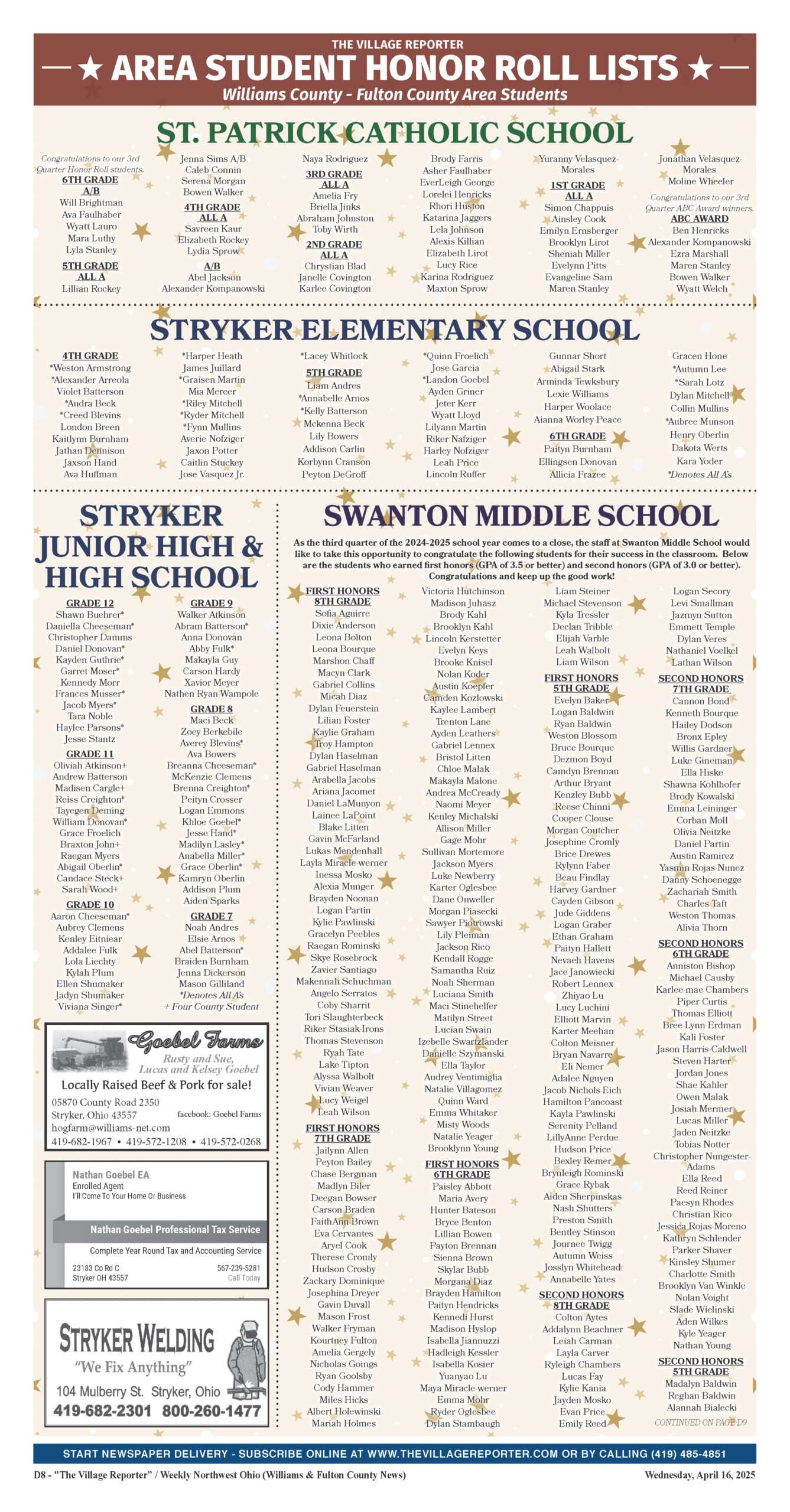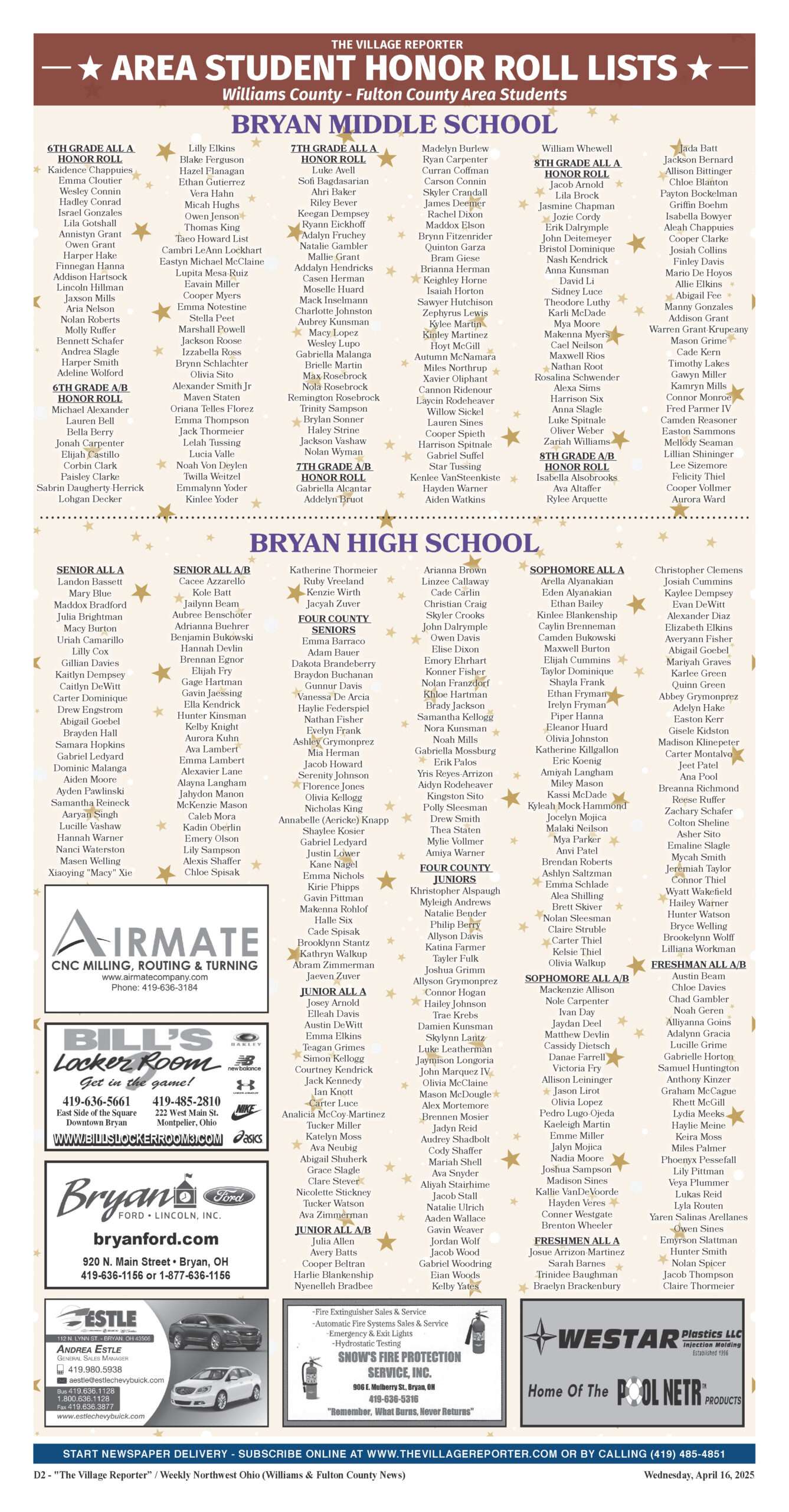 We are thrilled to present the Honor Roll for students across the Williams County and Fulton County area! Below, you’ll find 10 pages recognizing the hard work and dedication of these outstanding students.