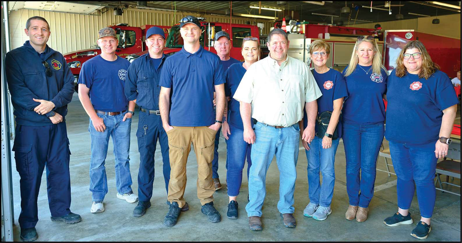 COMMUNITY … Former Fire Chief Matt Smithmyer stands with a group of Firefighters, EMTs, and Paramedics from the Lyons-Royalton Fire Department.