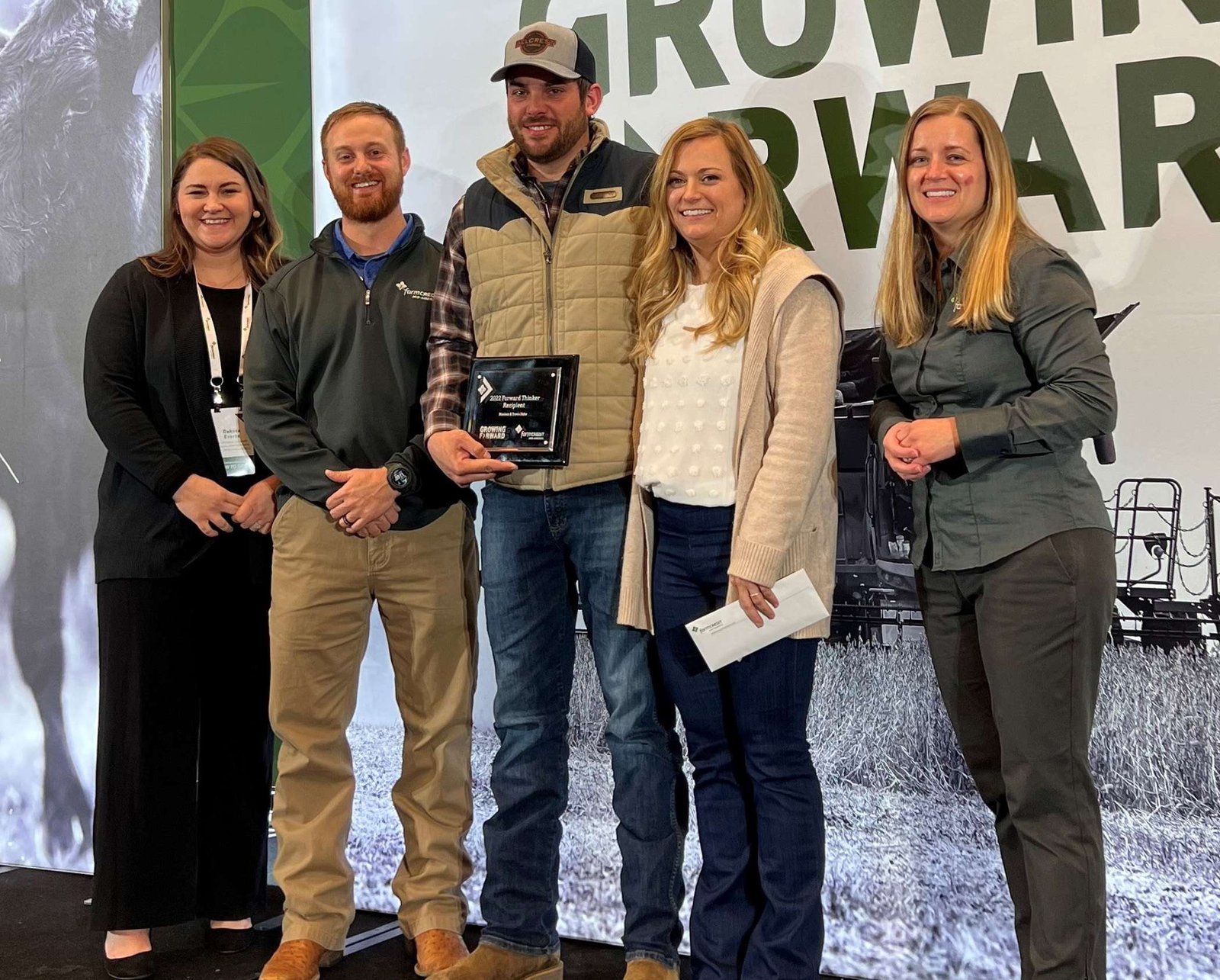 FORWARD THINKER AWARD … Dakota Everts, Tyler Keckley, Travis Hake, Marissa Hake and Melanie Strait-Bok award the Hakes with Farm Credit Mid-America’s inaugural Forward Thinker Award during a Know to Grow™ Conference in March.