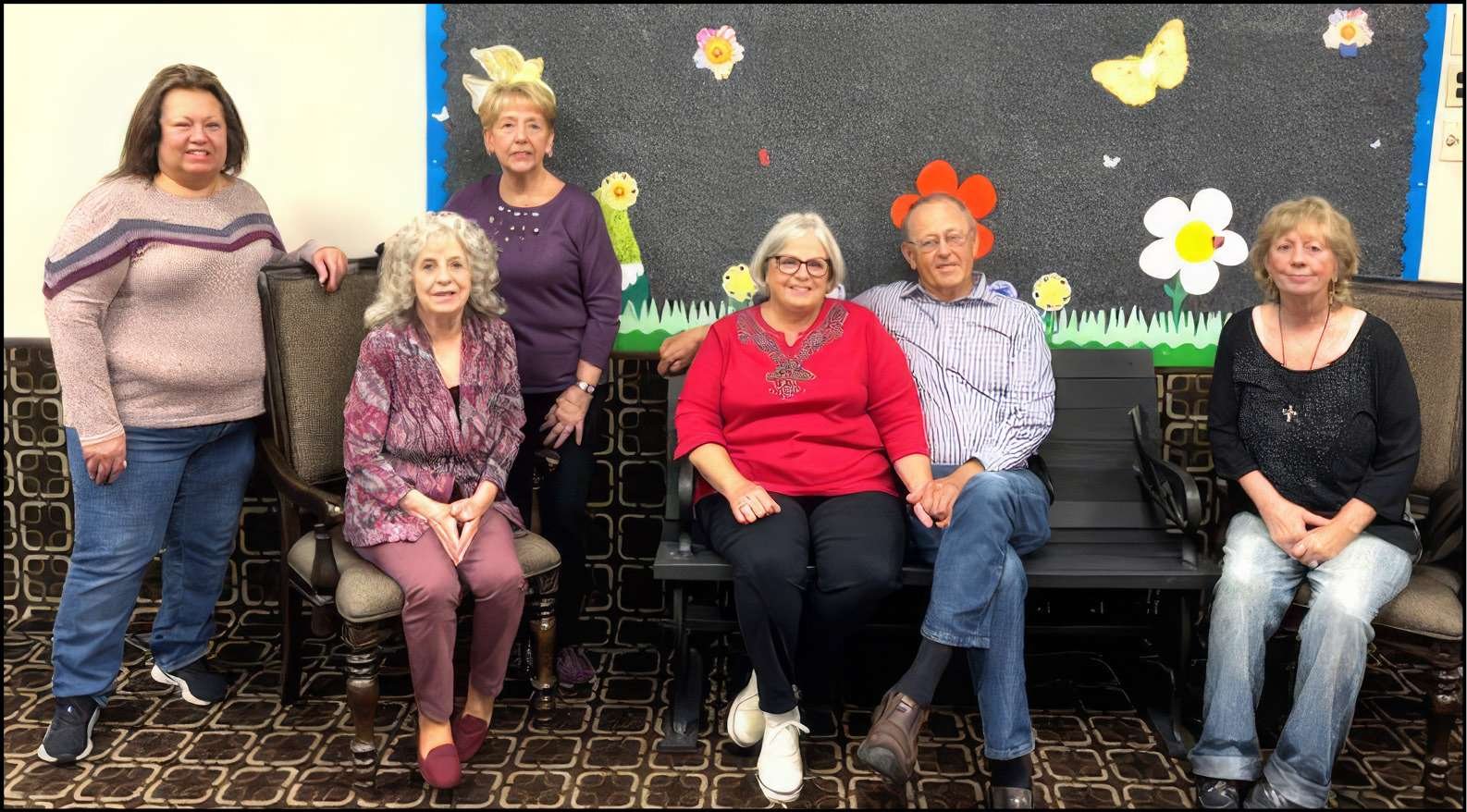 WEST UNITY SENIOR CENTER … Birthdays – (Front) Ann Bleikamp-Spicer, Arlene Borton, Viola Burnham. (Back) 55th Anniversary – Bill and Rose Stuckey (Rose also has May birthday), Site Manager Elise Siegel.