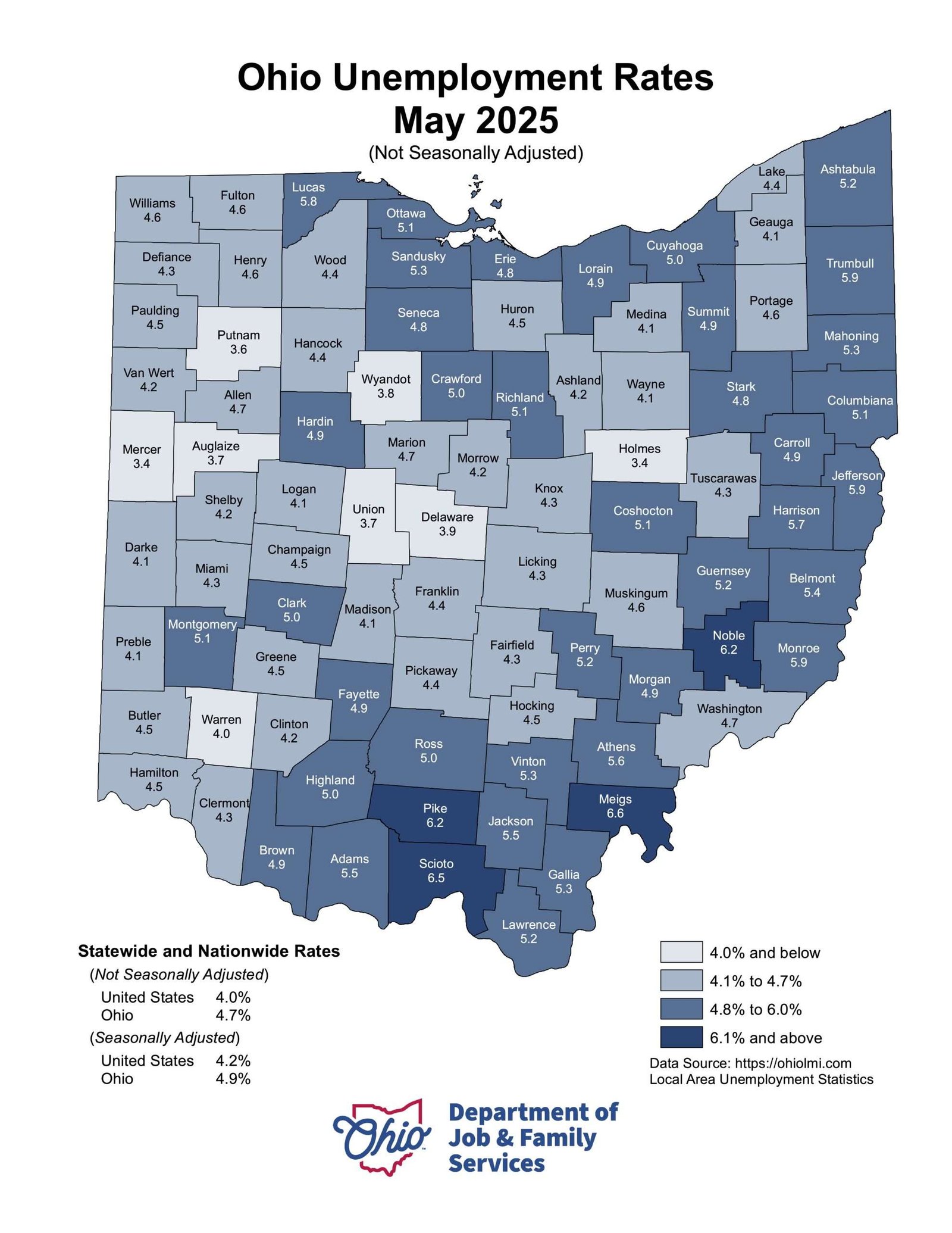 Unemployment figures for May 2025 have been released by the Ohio Department of Job and Family Services, showing continued improvement across Northwest Ohio. Overall, most counties are showing gains as the economy strengthens.