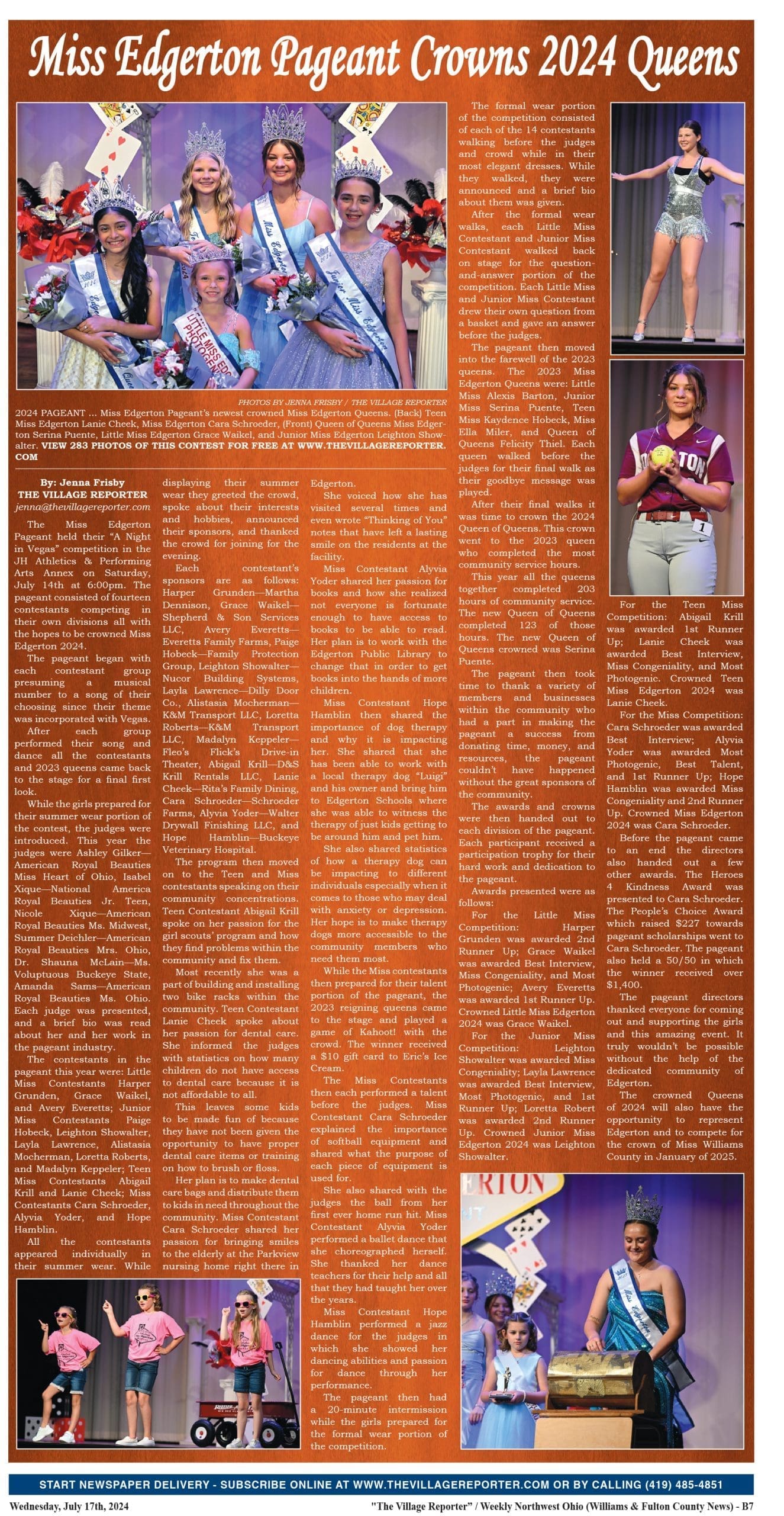 The crowned Queens of 2024 will also have the opportunity to represent Edgerton and to compete for the crown of Miss Williams County in January of 2025.