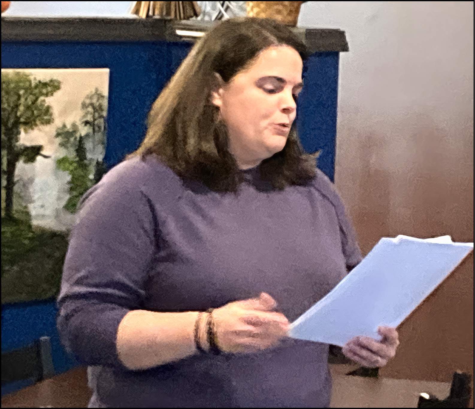 ANNUAL UPDATE … Montpelier Area Foundation president Kara Custer (above) gives an update on the contributions made during the 2024-25 year at their annual meeting held on Thursday, October 30, at Cookies on Demand in Montpelier.