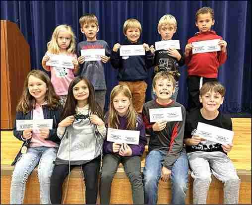 K-2 BUCKET FILLERS … Front Row – Madelyn Priest, Carissa Harter, Adelynn Clark, Zaedyn Alvarado, Hudson Ruble. Back Row – Avery Smith, Holden Potter, Waylon Dingus, Liam Stantz, Khyler Nemire.