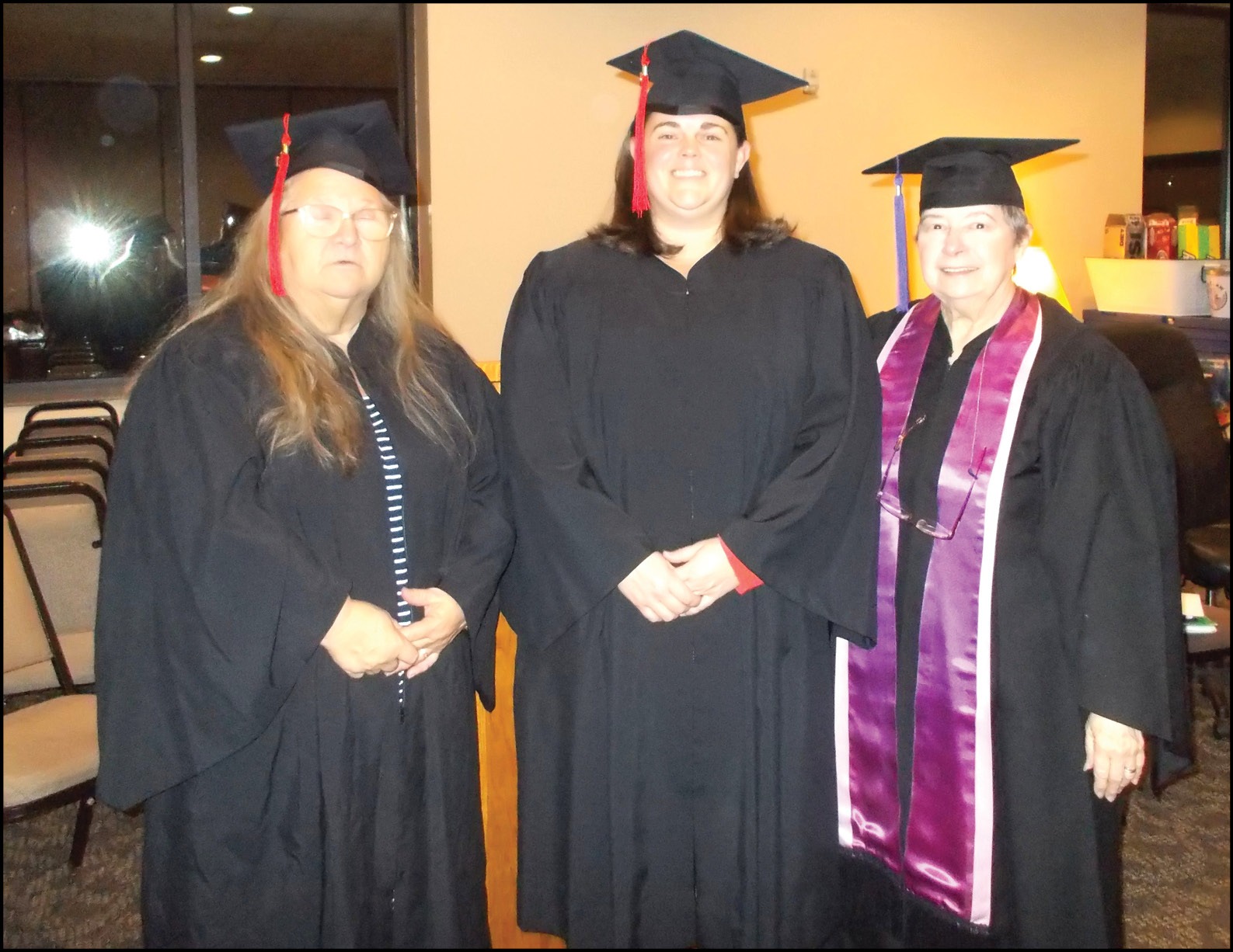 Collegians present attended in regalia, consisting of a black cap and gown. Collegian Kara Custar, center, was honored in the Red Tassel ceremony when the green tassel on her cap was changed to a red tassel.