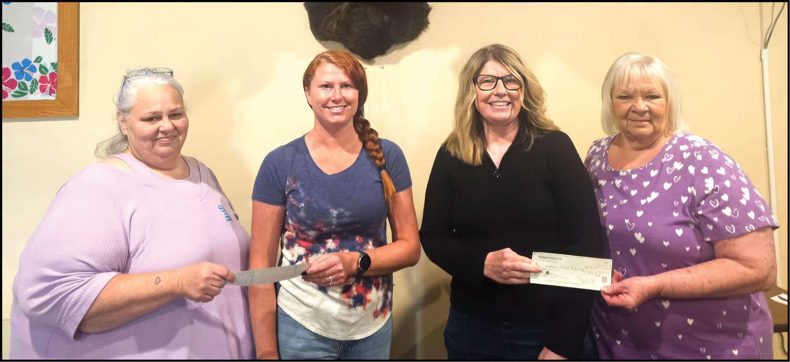 SUPPORTING THE COMMUNITY … Donations to three local organizations were made recently by Montpelier Chapter 270, Women of the Moose. Receiving donations were Williams County Humane Society-$1,000, Montpelier Public Library-$1,000, and Montpelier Junior High Student Council special project-$500. Shown at the check presentations from left to right are Senior Regent Deidre Cole, Alicia Strup from the Williams County Humane Society, Director Angie Humphrey from Montpelier Library, and Mary Mercer serving as chairman of the WOTM Mooseheart/Moosehaven Committee. Funds for these donations were raised from proceeds at the chapter’s April Purse Party organized and chaired by Mary Mercer and committee. Other donations were also designated for Mooseheart “The Child City” in Illinois, Moosehaven “City of Contentment” seniors retirement community in Florida, and WOTM scholarship & maintenance fund via Moose Charities. Also serving as chapter officers this year are Treasurer Susie Ogden, Secretary Betsy Thorp and Jr. Past Regent Terri Baltosser. Chapter members are encouraged to attend regular chapter meetings the third Thursday of each month at 6:30 p.m. at the Montpelier Moose Lodge.