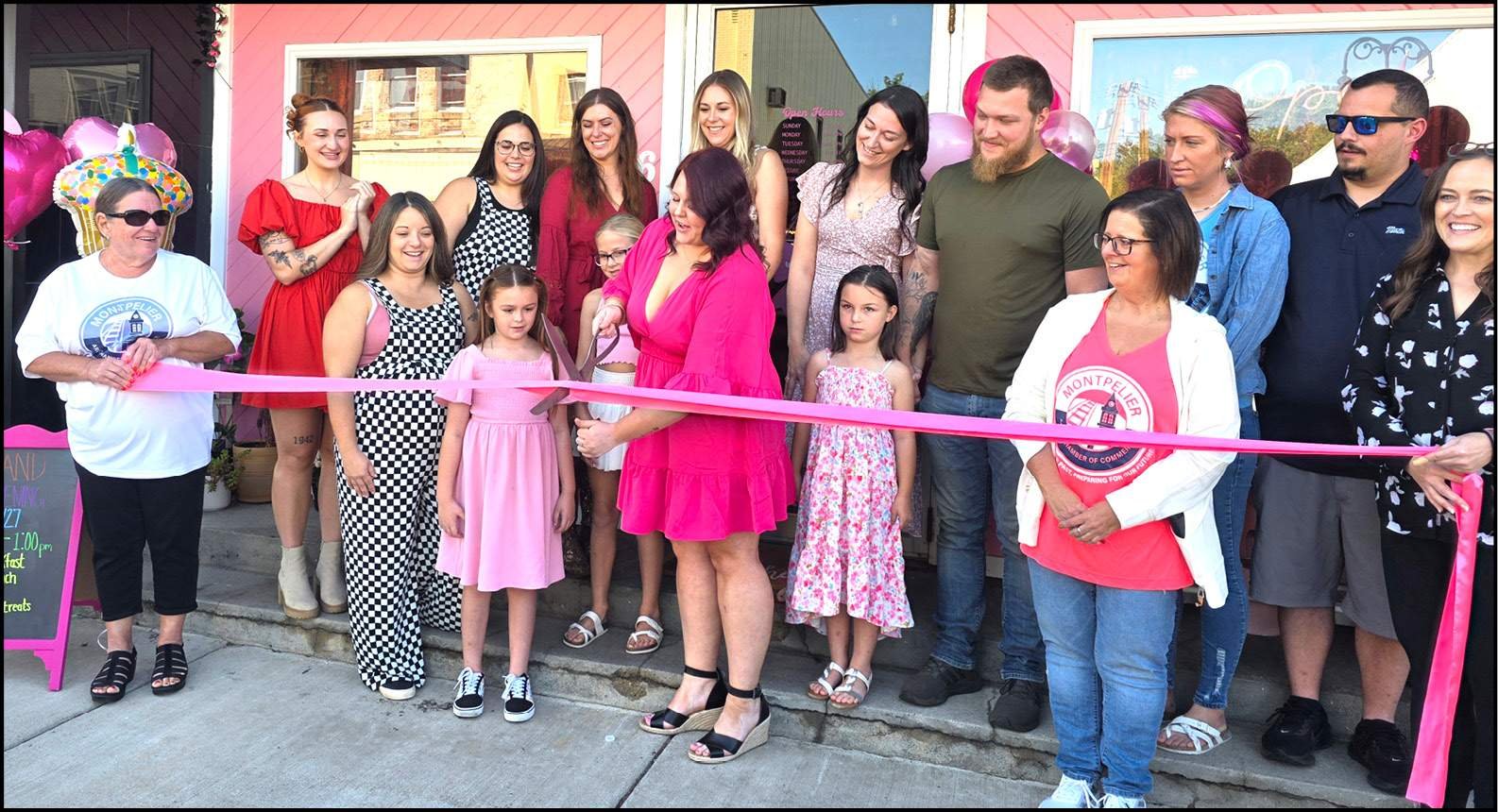 SWEET START … Captured in this joyful moment is owner Taryn, surrounded by her supportive family, friends, and representatives from the Montpelier Area Chamber of Commerce, alongside an enthusiastic community eager to indulge their sweet cravings.