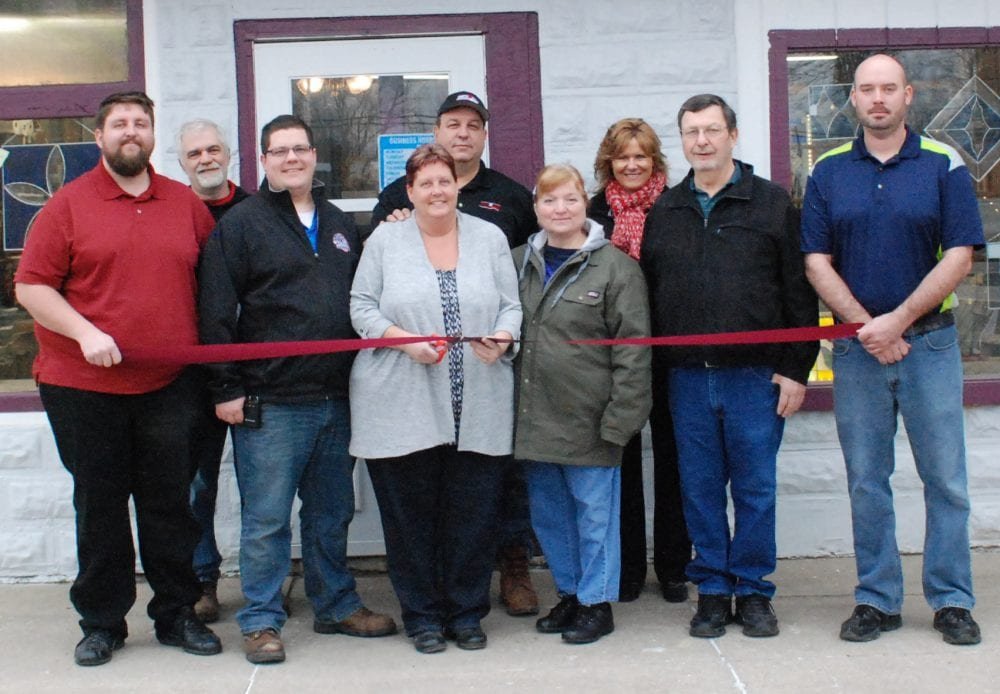 If you are looking to learn something new, Mudsock Glass and Artist Co-Op is the place for you. Located at 113 North Michigan in Edon, Tonya Loughborough, artist and designer has something for everyone. Offering classes in stained glass, fused glass, fabric marbeling, jewelry classes, home brewing classes and monthly painting and essential oil classes, visit her Facebook page for a complete list of the upcoming schedule or call 260-312-0652. Shown at the recent ribbon cutting were: Andrew Loughborough, Spencer Kaiser, Chamber member; Tonya Loughborough, owner; Denise and Marvin Strup, Tonya’s parents; and Eric Mearse. Back row: Lee Lawrence, David Loughborough, owner and Jody Bidlack, Edon State Bank V.P.