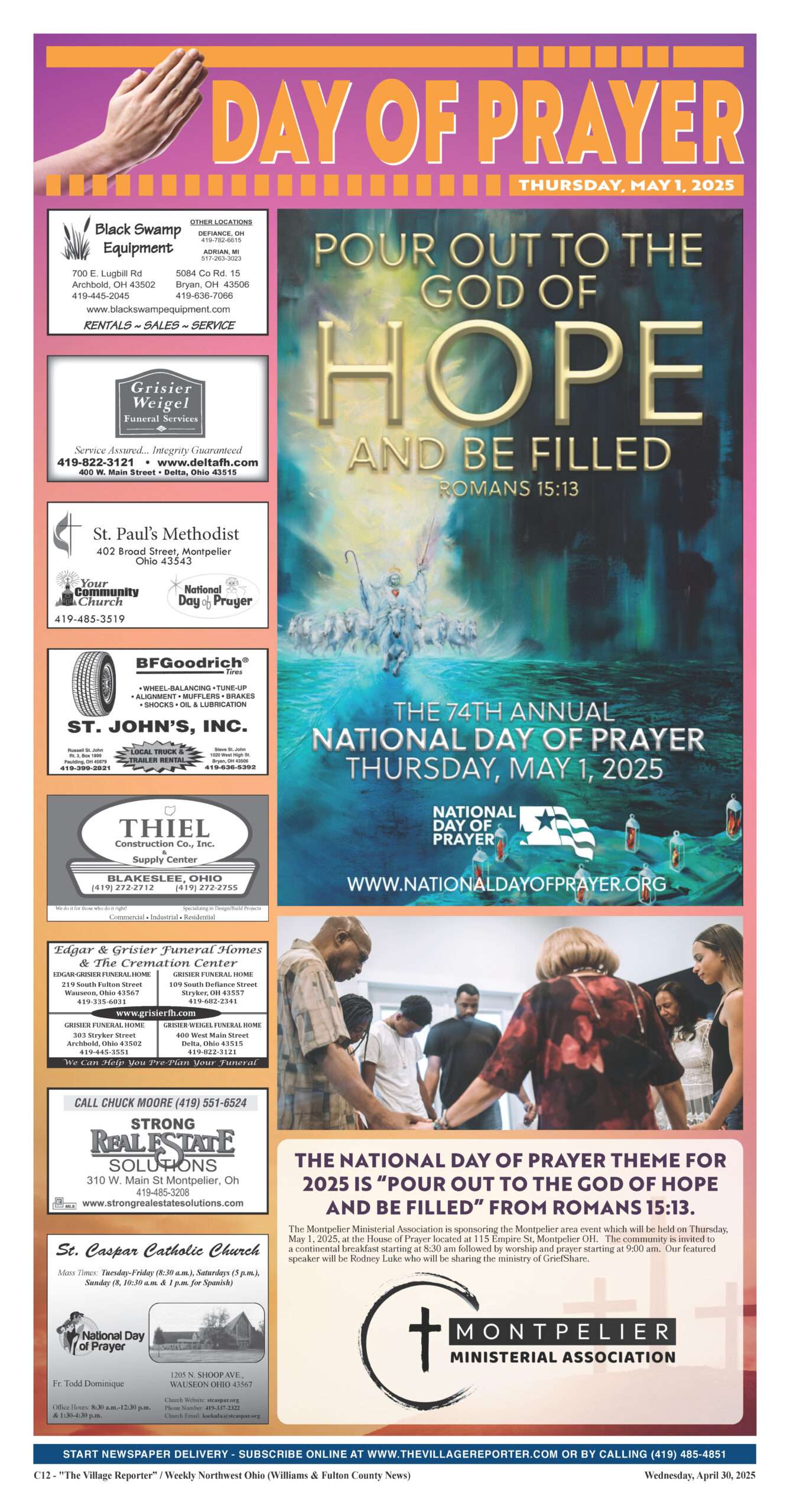 Join us on May 1st for the National Day of Prayer as we unite in faith and hope at special gatherings across the community. Let’s come together to pour out to the God of hope and be filled with joy and peace—learn more at www.nationaldayofprayer.org!