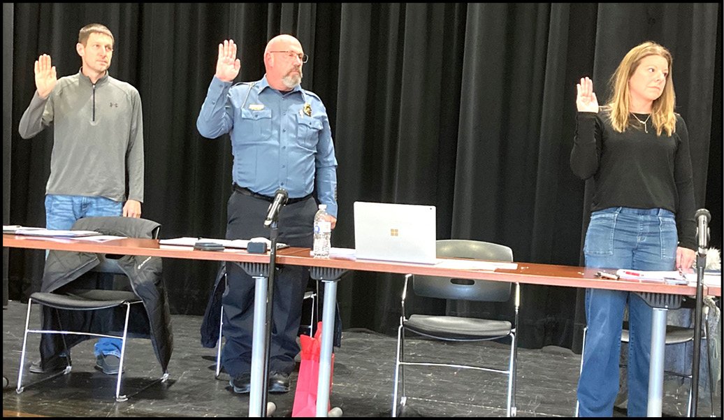 OATH OF OFFICE … The North Central Board of Education held its organizational meeting on Tuesday, January 13. Taking the oath of office were board members from left, Mark Moreland, Tim Livengood, and Kati Burt.