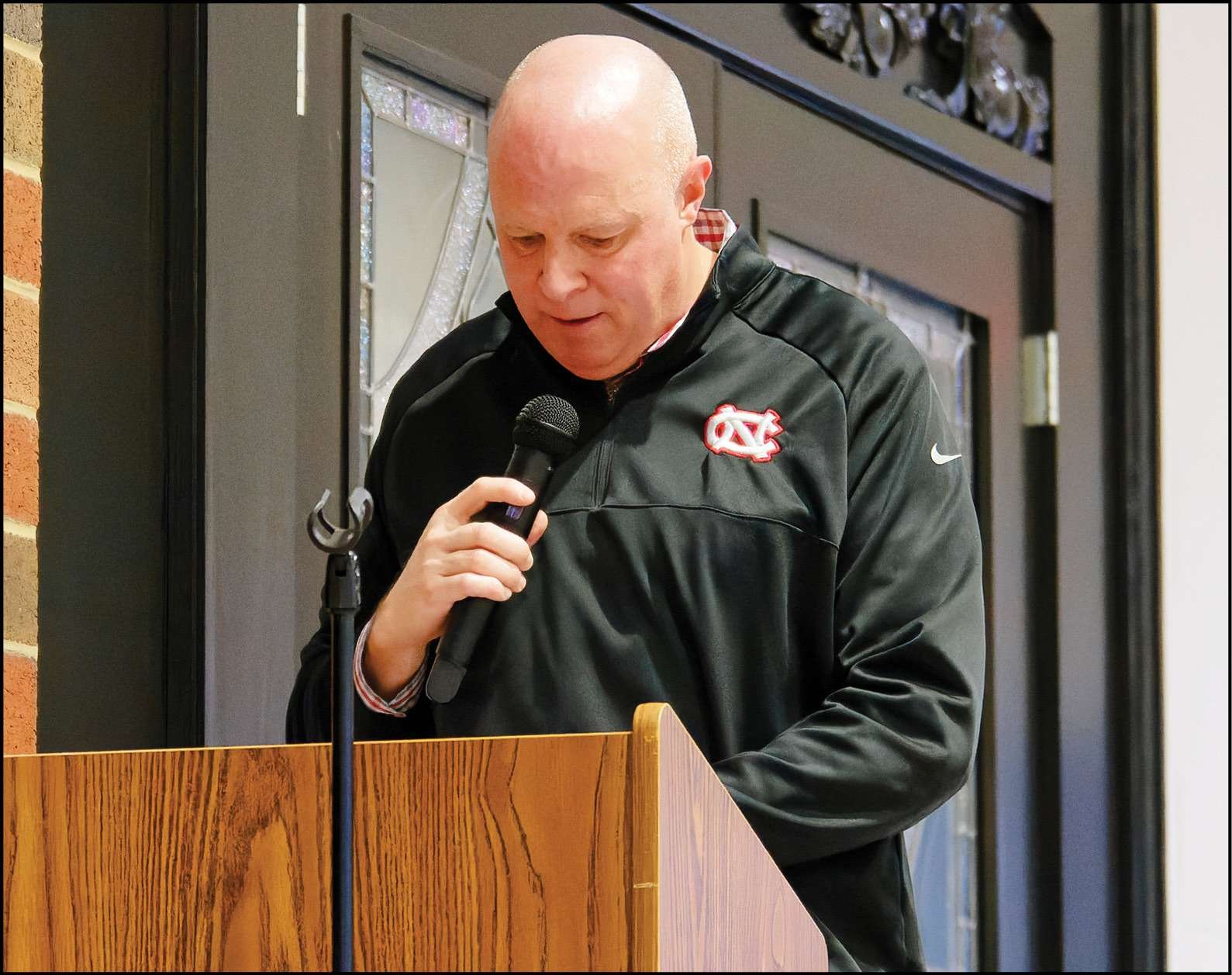 BACKPACK … Elementary Principal Brent Saneholtz delivers his administrative report to school board members. During his time, he delivered updates regarding the NC Backpack Program.