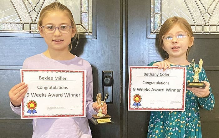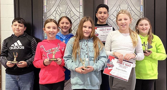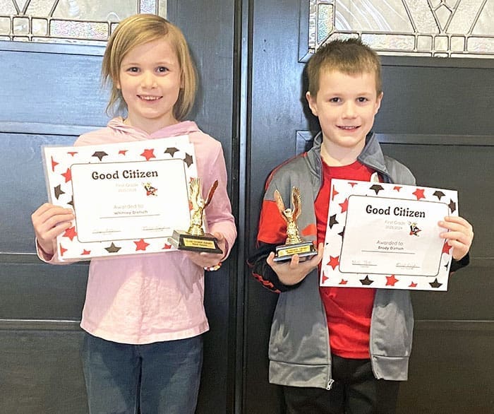 Share Facebook Twitter LinkedIn Pinterest EmailPHOTOS PROVIDED / THE VILLAGE REPORTER1ST GRADE … Good Citizen-Whitney Dietsch, Good Citizen-Brody Dietsch.2ND GRADE … Good Citizen-Bexlee Miller, Good Citizen-Bethany Coler.3RD GRADE … Good Citizen-Arianah Harrison.4TH GRADE … Eagle Way-Yael Pacheco, Social Studies-Maci DeLong, Math-Hunter Wright, Science-Eli Knapp, Reading-Grace Bexten, Eagle Way-Jayden Massey, Language Arts-Allison Zuver.5TH GRADE AWARDS … Science-Leo Knapp, Language Arts- Brayton Houk, Social Studies-Emmi Burt, Reading-Lelah Carpenter, Eagle Way-Kayden Solano, Eagle Way-Ginger Fackler, Math-Braylee Appel.6TH GRADE AWARDS … Science and Eagle Way-Kaedence Heller, Reading-Dayne Fidler, Eagle Way-Gerardo Olmos, Social Studies-Aiden Bly, Language Arts-Tyler Myers, Math-Brantley Oyer.
